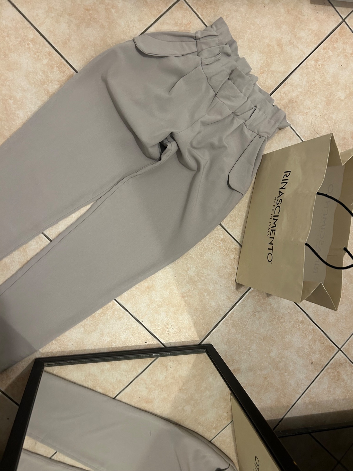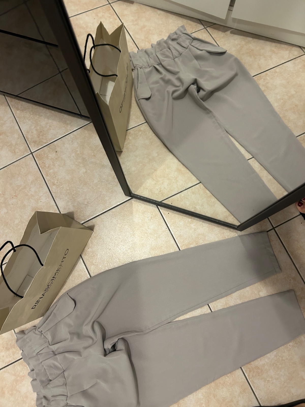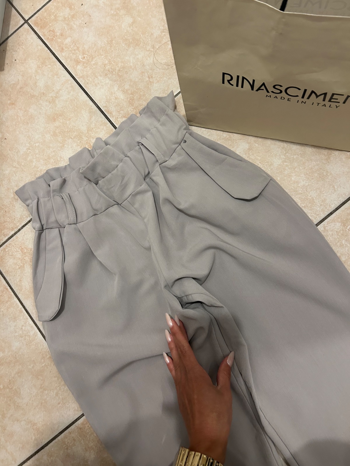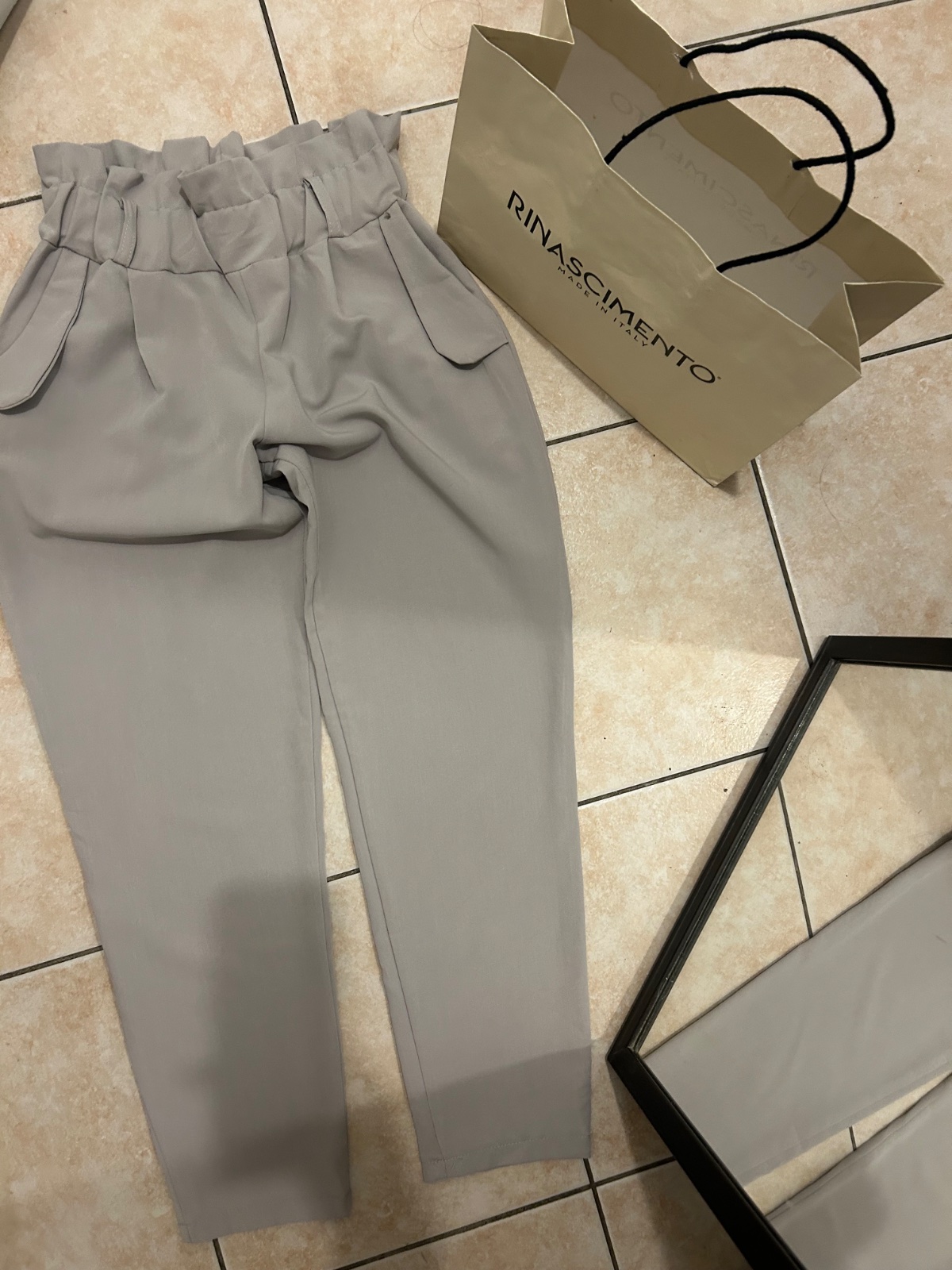 Krásne nohavice. Vyšší pas. Svetlo šedé. Ako nové. V pase guma. Na S.