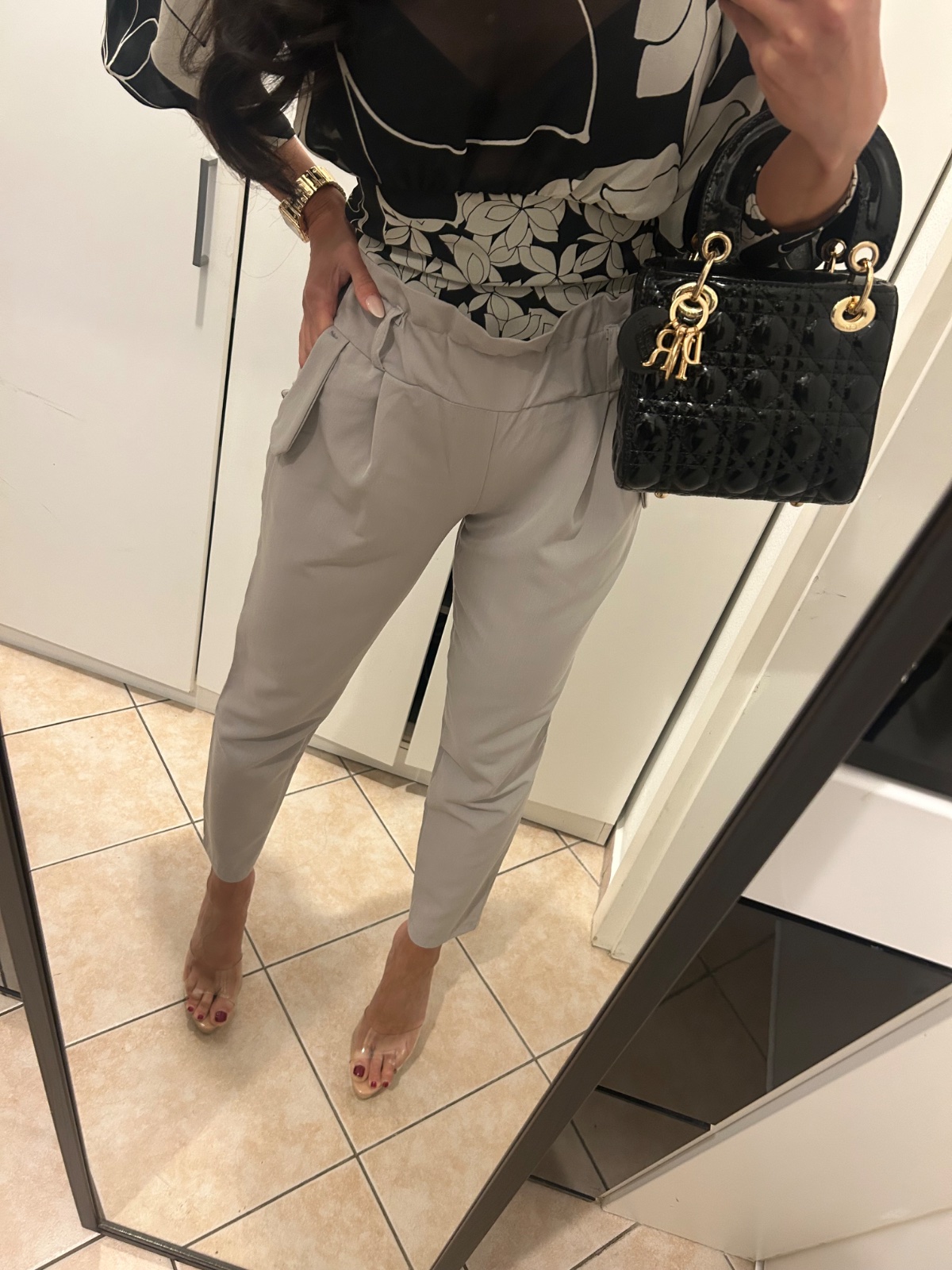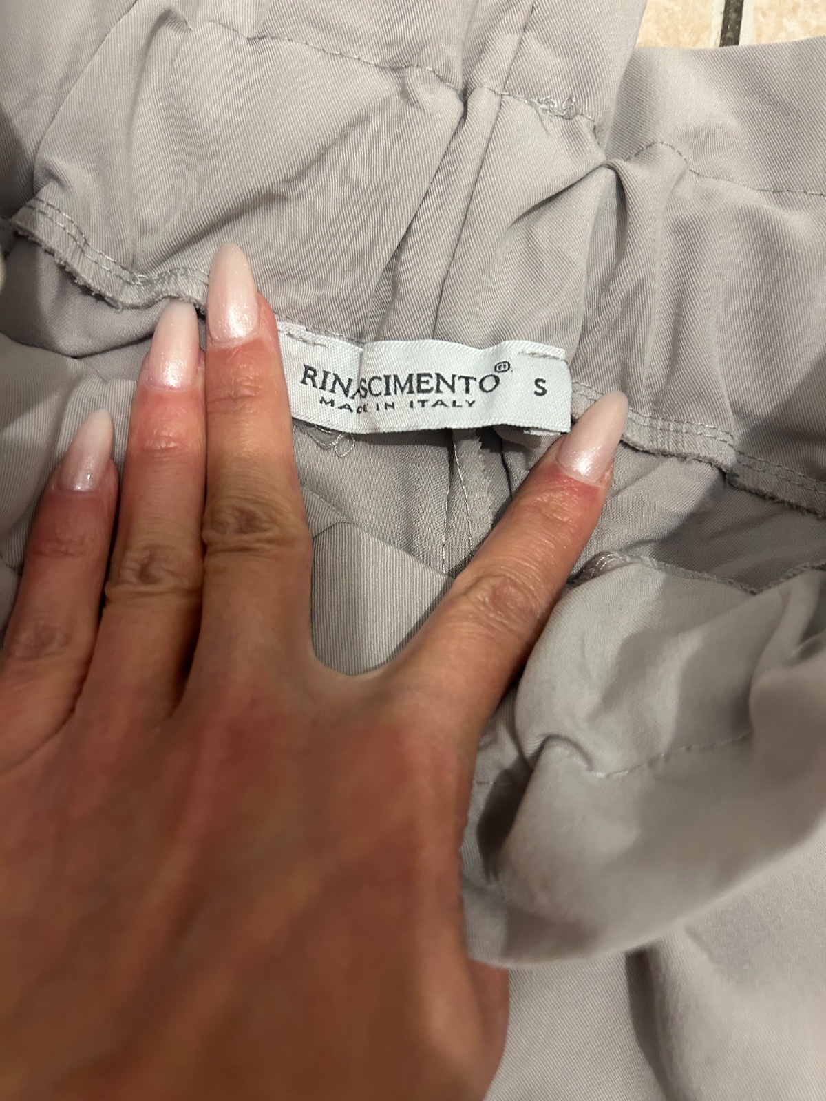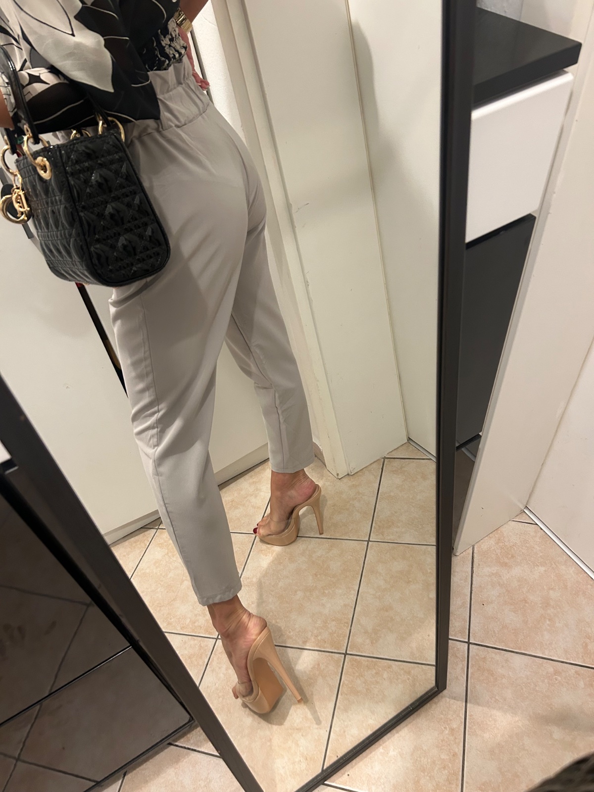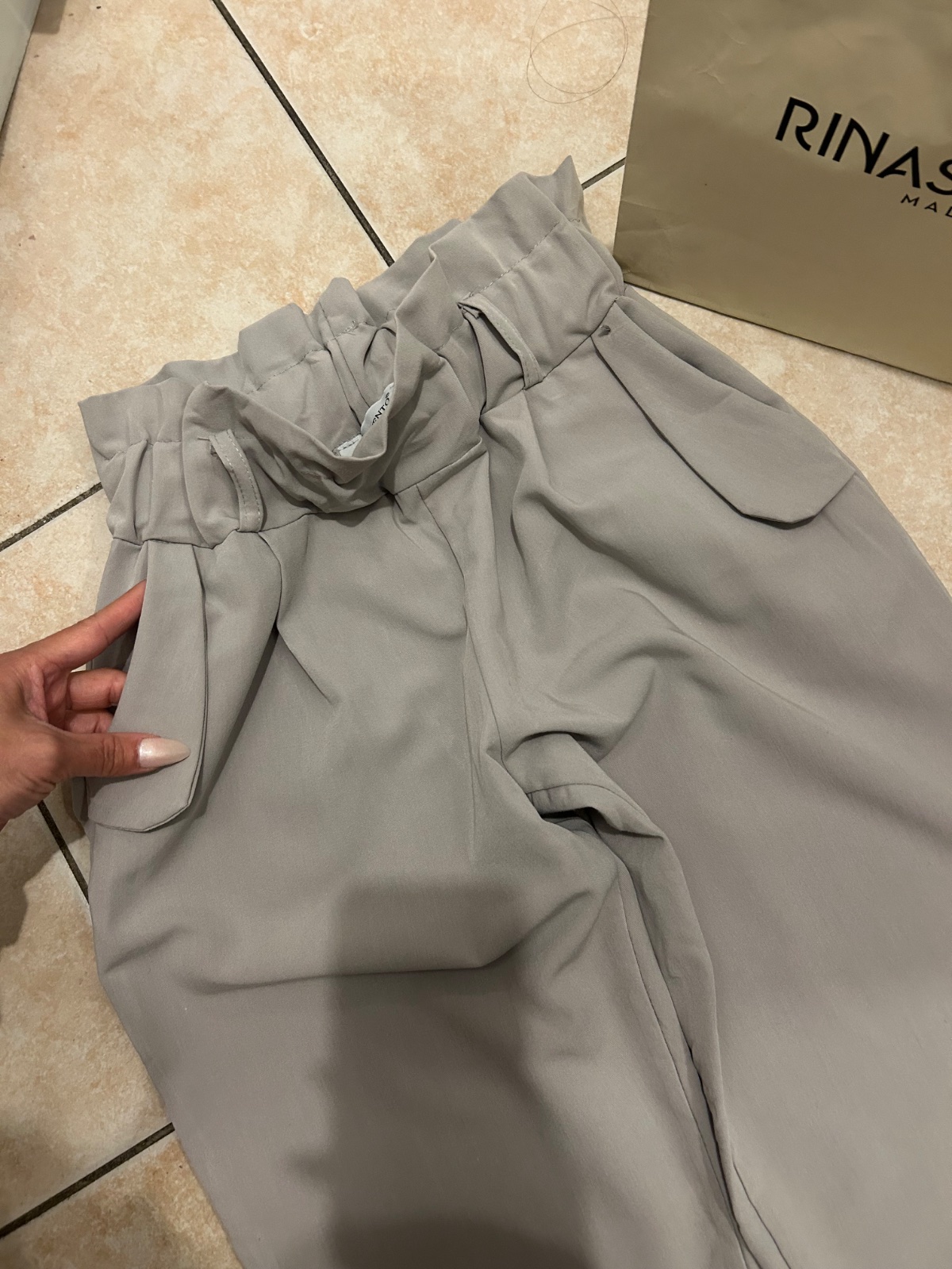 Krásne nohavice. Vyšší pas. Svetlo šedé. Ako nové. V pase guma. Na S.