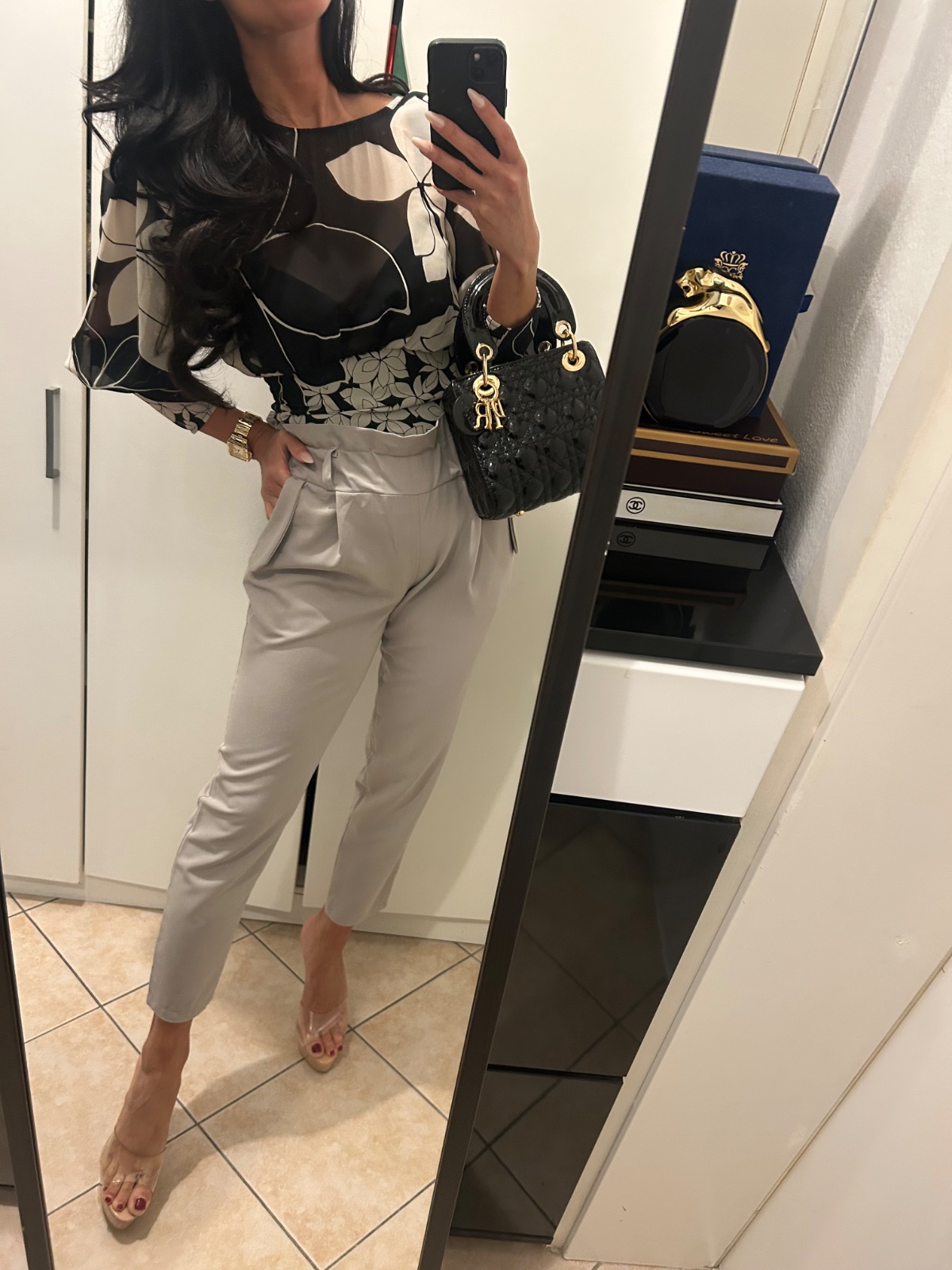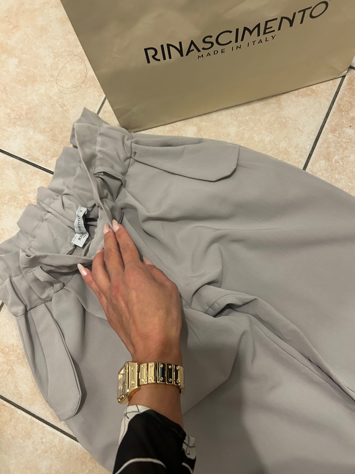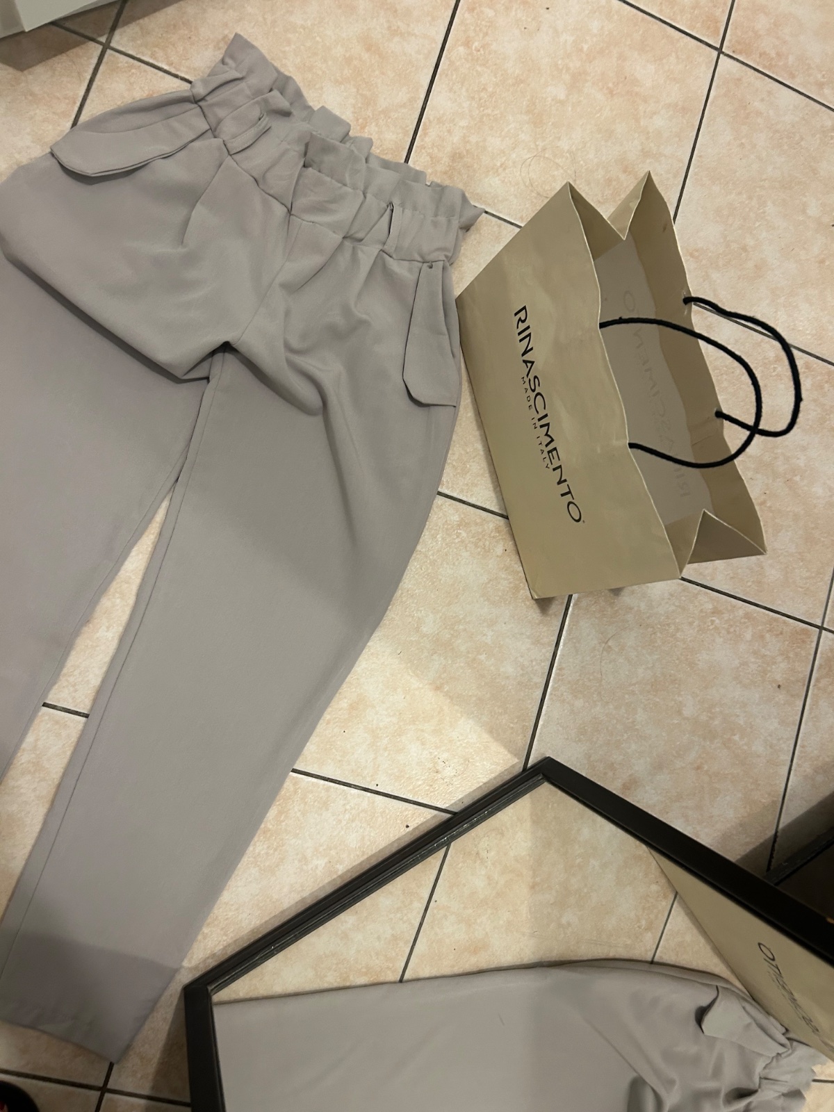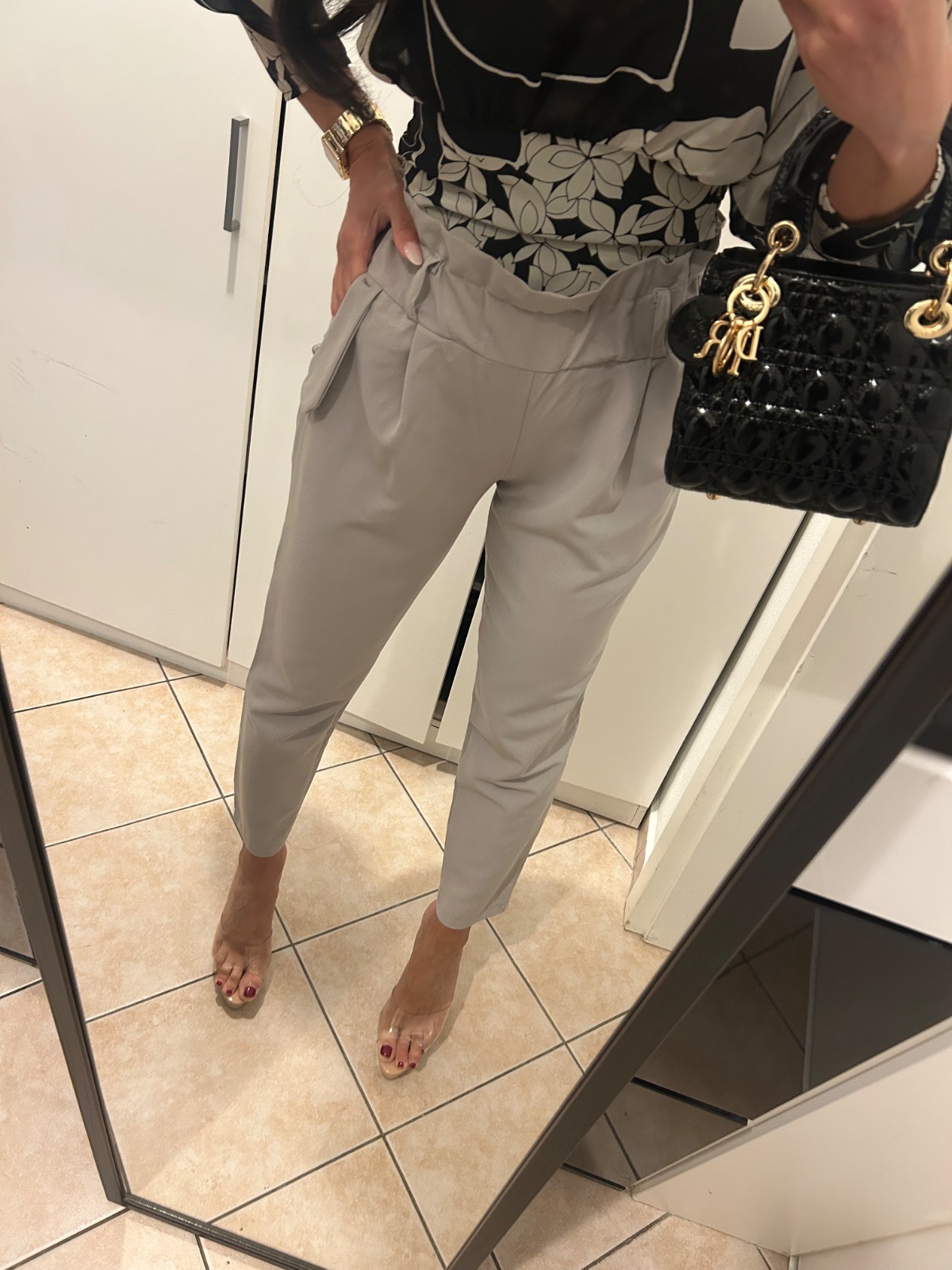 Krásne nohavice. Vyšší pas. Svetlo šedé. Ako nové. V pase guma. Na S.