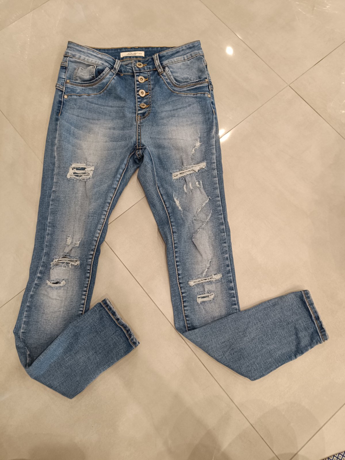 Slimfit, značka Sinsay, veľkosť S ale skôr XS. Dĺžka 84cm zahnuté, 90cm vyhnuté. Pás 32cm, boky 44cm, predný/zadný sed 23/33cm.