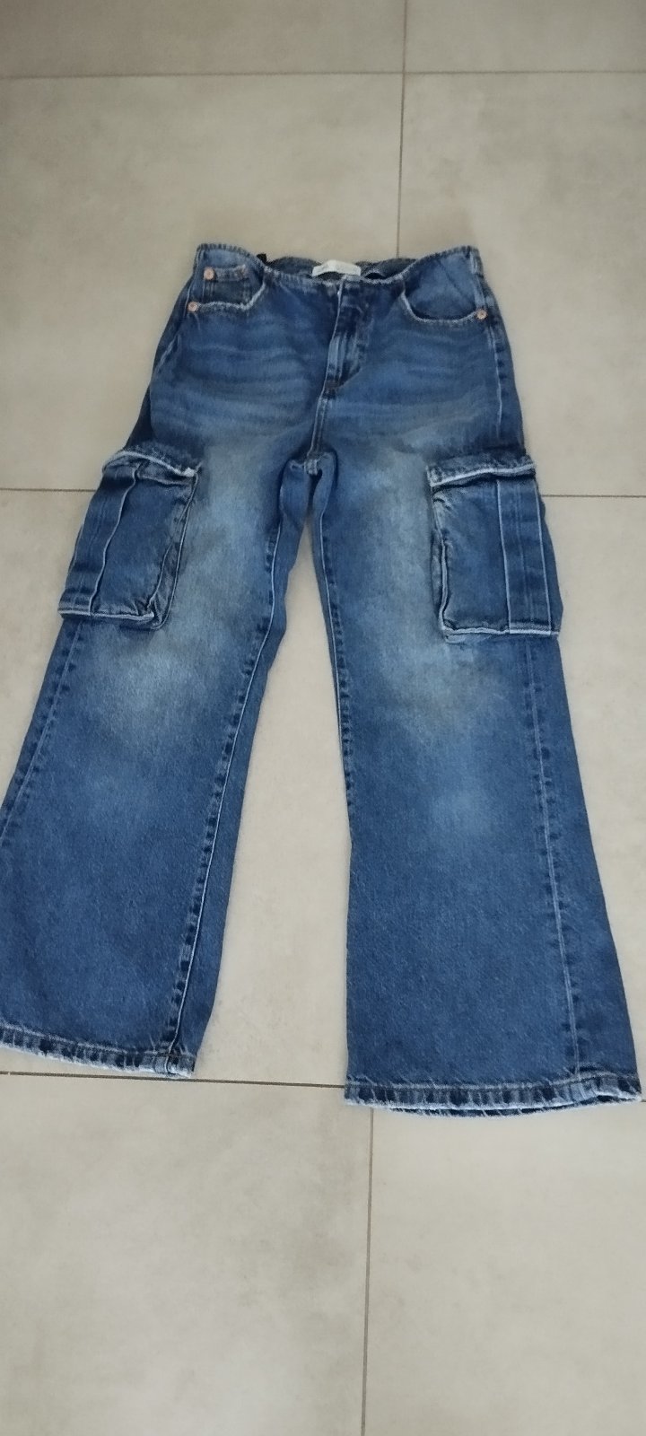 Moderné, široké kapsáče, uvedená veľkosť je 164, ale skôr 158/ 164, preto uvádzam miery. Okolo vreciek vpredu aj vzadu je jemné zodranie v rámci dizajnu. Sú v perfektnom stave, ako nové,nosené len jednu sezónu, striedavo s inými.Kupované tu na MK, pôvodná cena 32,99 eur.