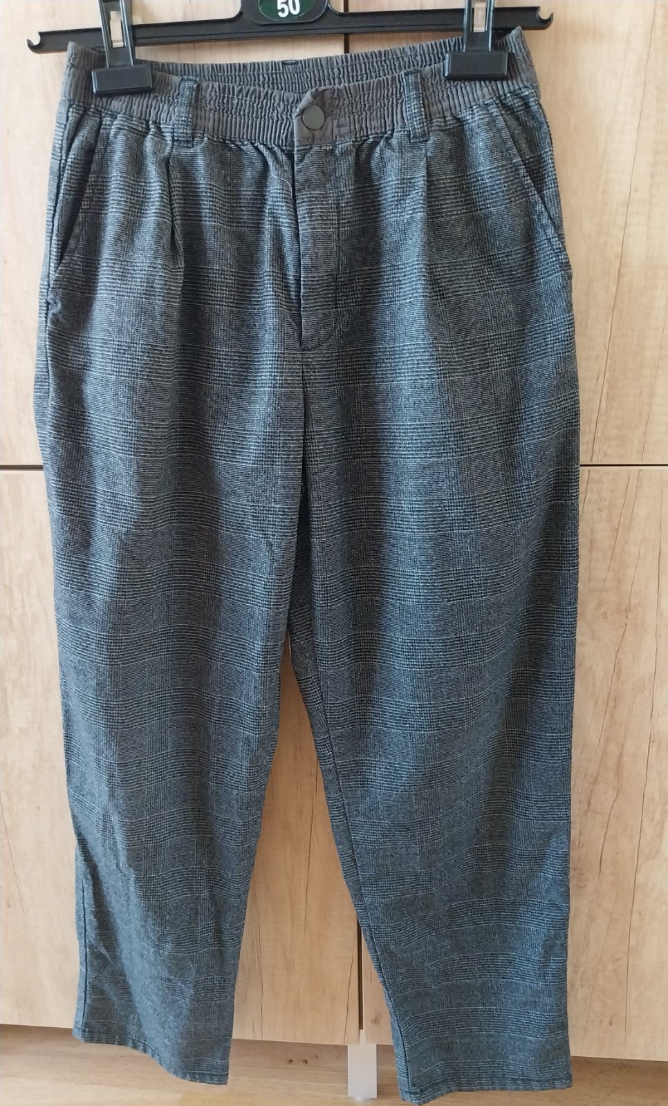 Kárované hnedé nohavice zn. Zara voľného strihu, v páse gumička. Nosené, ale vo výbornou stave. Sadnú aj pre ženy veľ. XS/S. (11)
