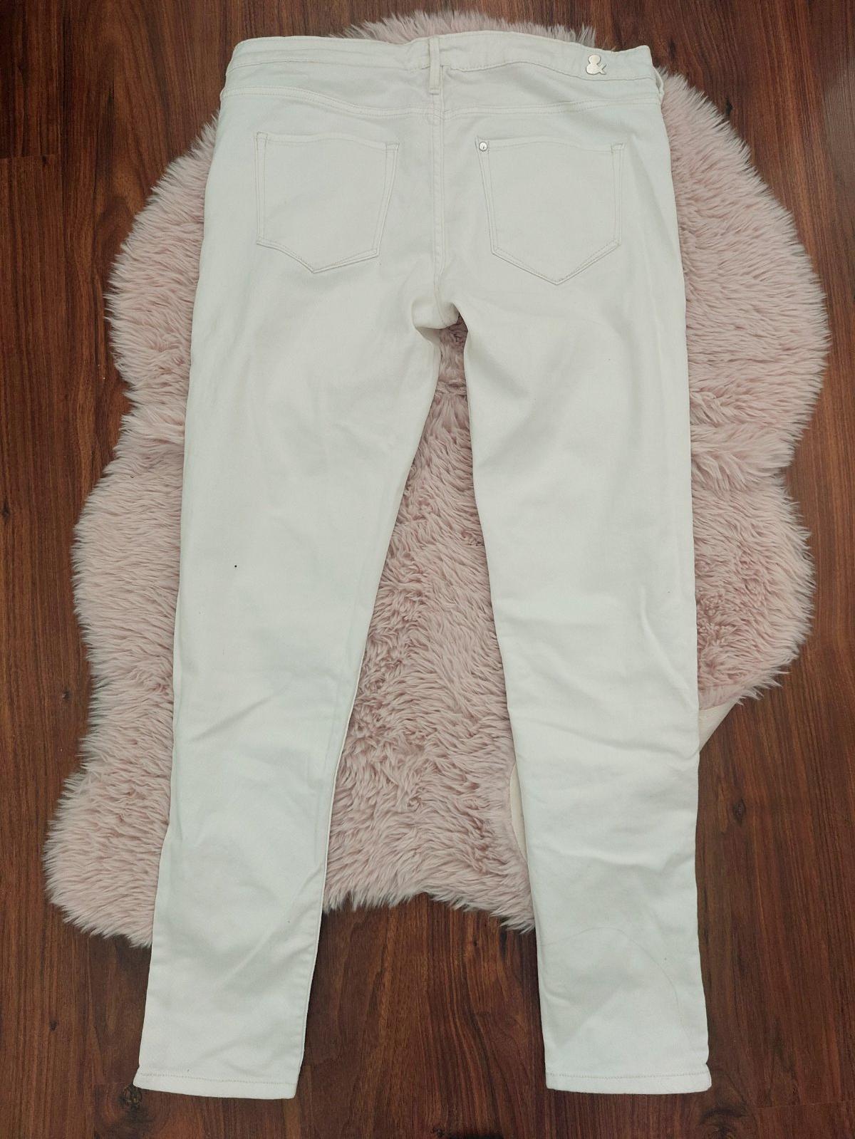 Dámske biele rifle, oblečené 1x. Veľkosť uvedená 40, rozmery v pokoji: 39x2, dĺžka je 89cm. Pekný stav, bez poškodení. Zn.Esmara Cena: 5€