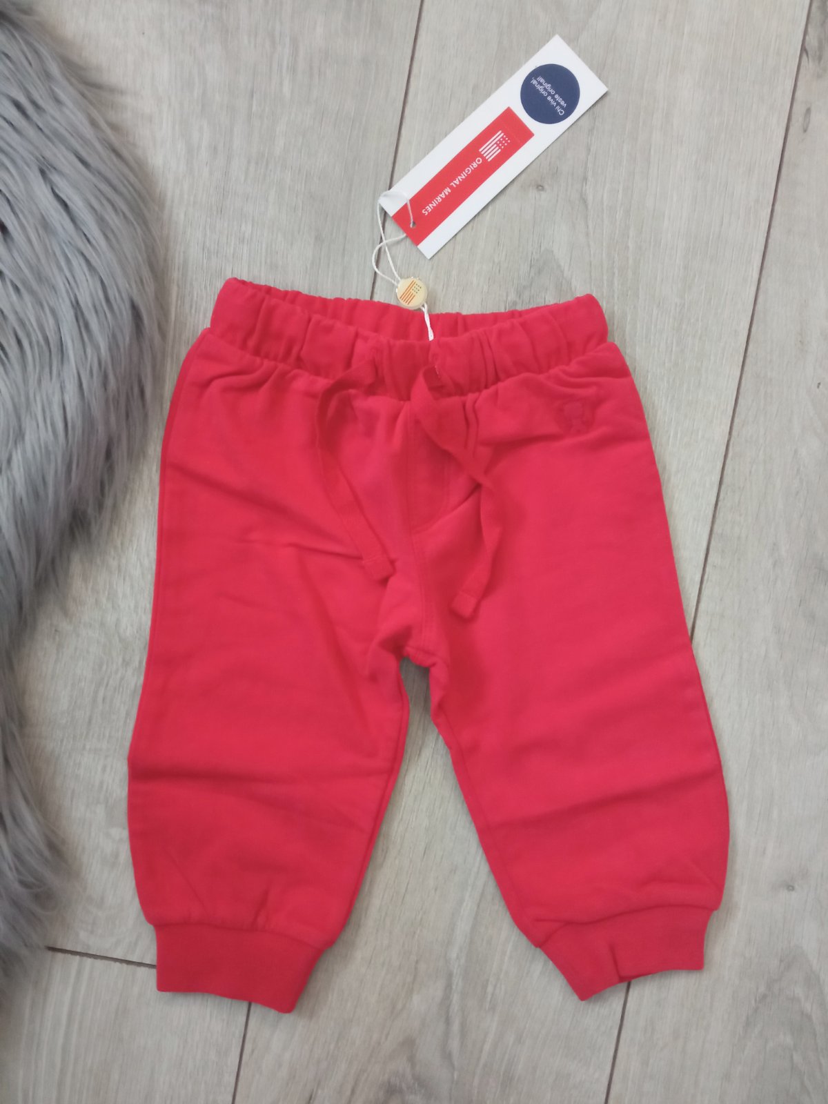 Chlapčenské kojenecké tepláky značky Original Marines, na ľavej strane našitý malý macík, s patentom na spodku, pás na gumu, so zaväzovaním na šnúrku.