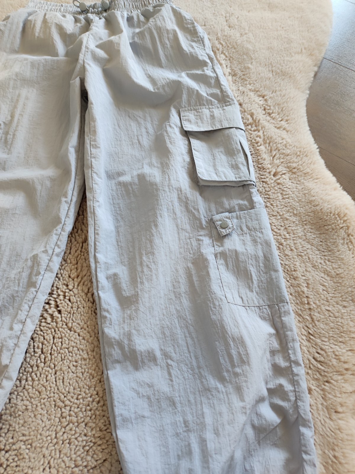 Ponúkam šuštiakove 3/4 tepláky,vzaté 2×.Farba bledučko fialová ako nové..... tenký šuštiak.