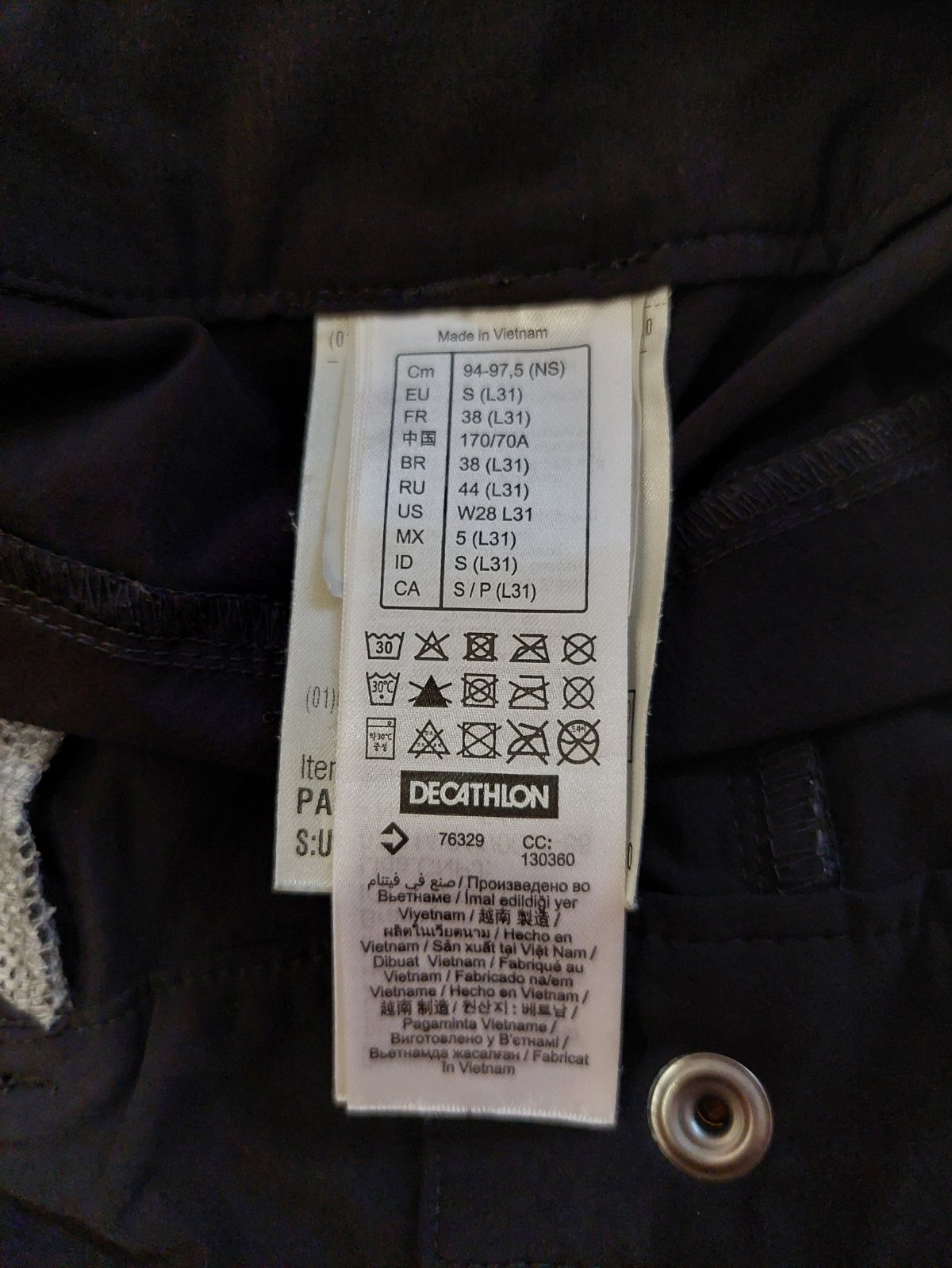 Cierne nepodsite turisticke nohavice zn. Decathlon "Quechua", veľkost S. Su v top stave, oblecene 3krat, su mi uz uzke. Je to tenka pruzna latka, na spodu nohavic je gumicka na stiahnutie.