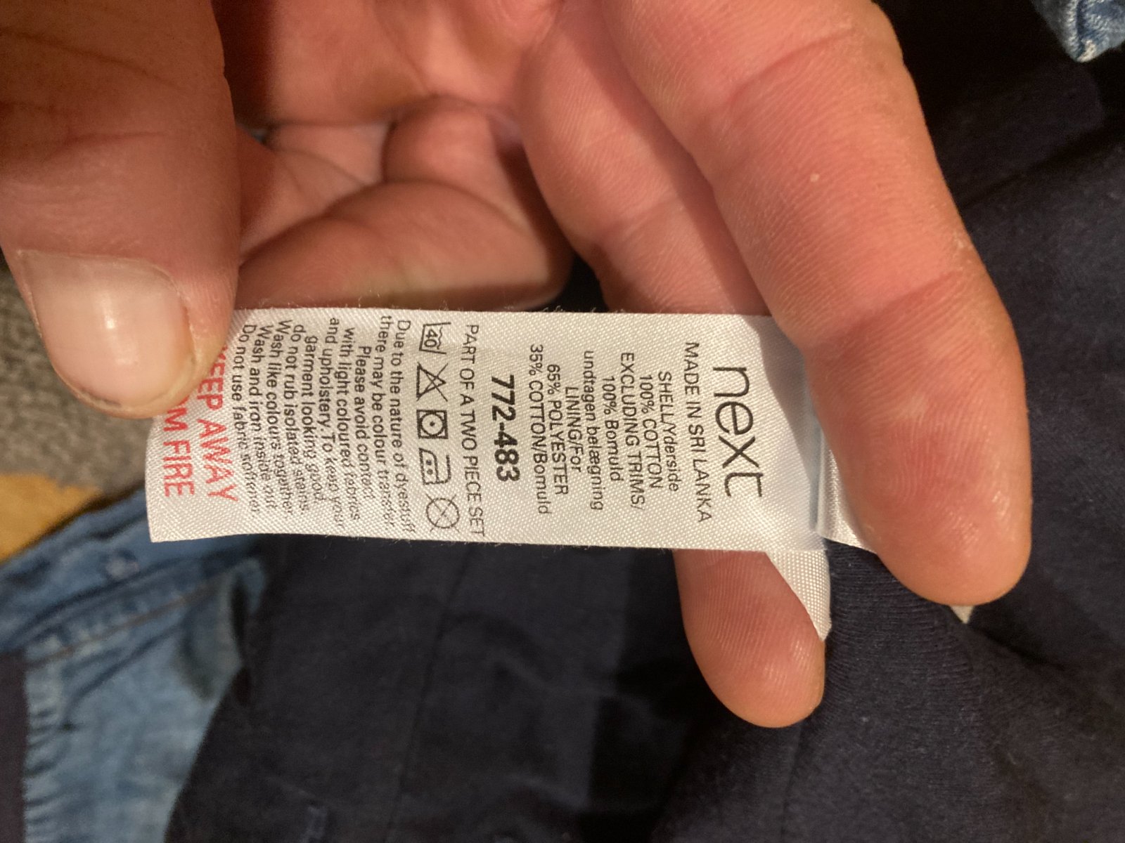NEXT krásne nohavice na traky , skor hrubšie takže na chladnejšie počasie velkost na 3-6 mesiacov 68 100% stave Dlžku si viete upravit pomocou 2 gombikov ktore su na ramene
