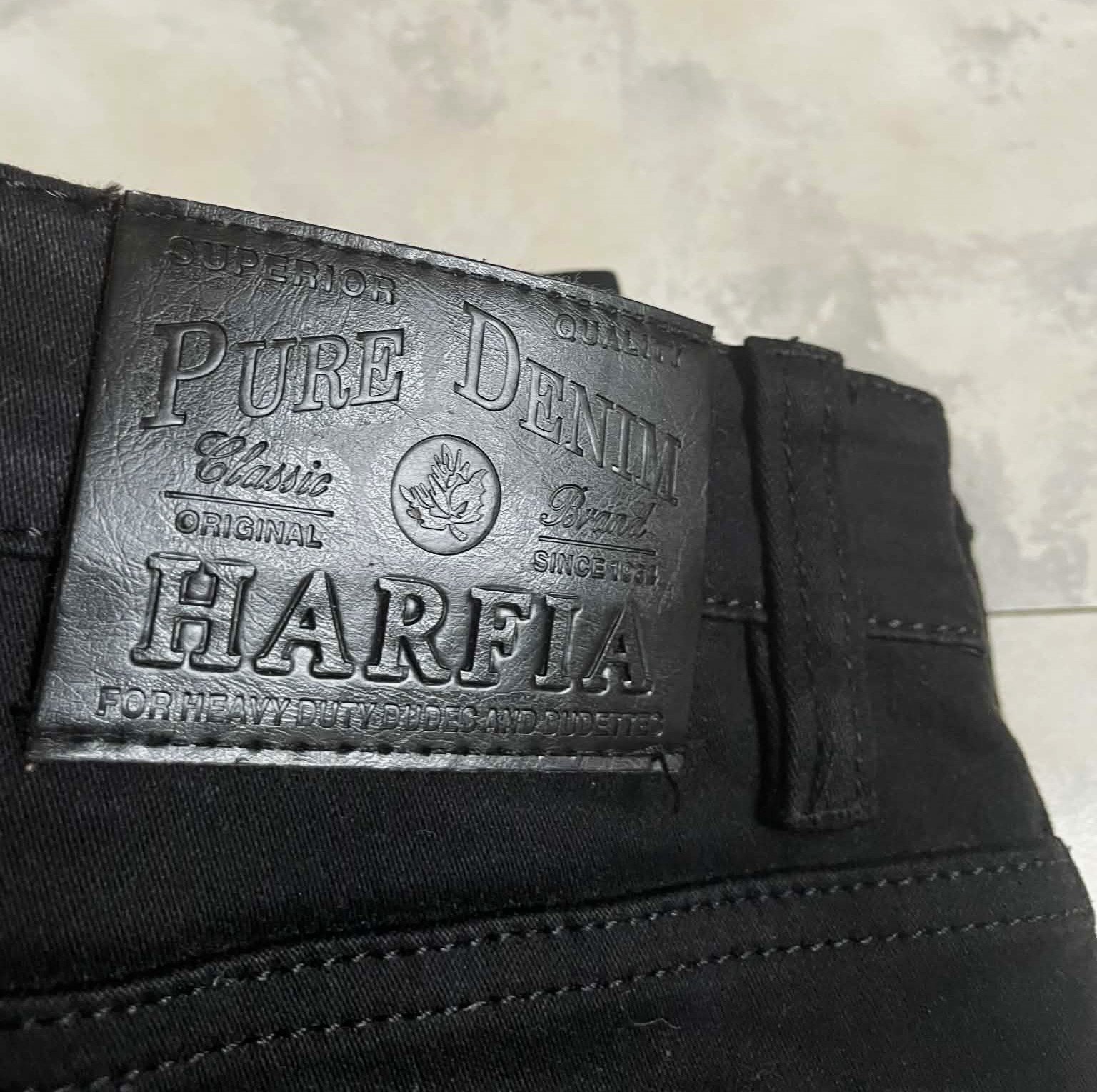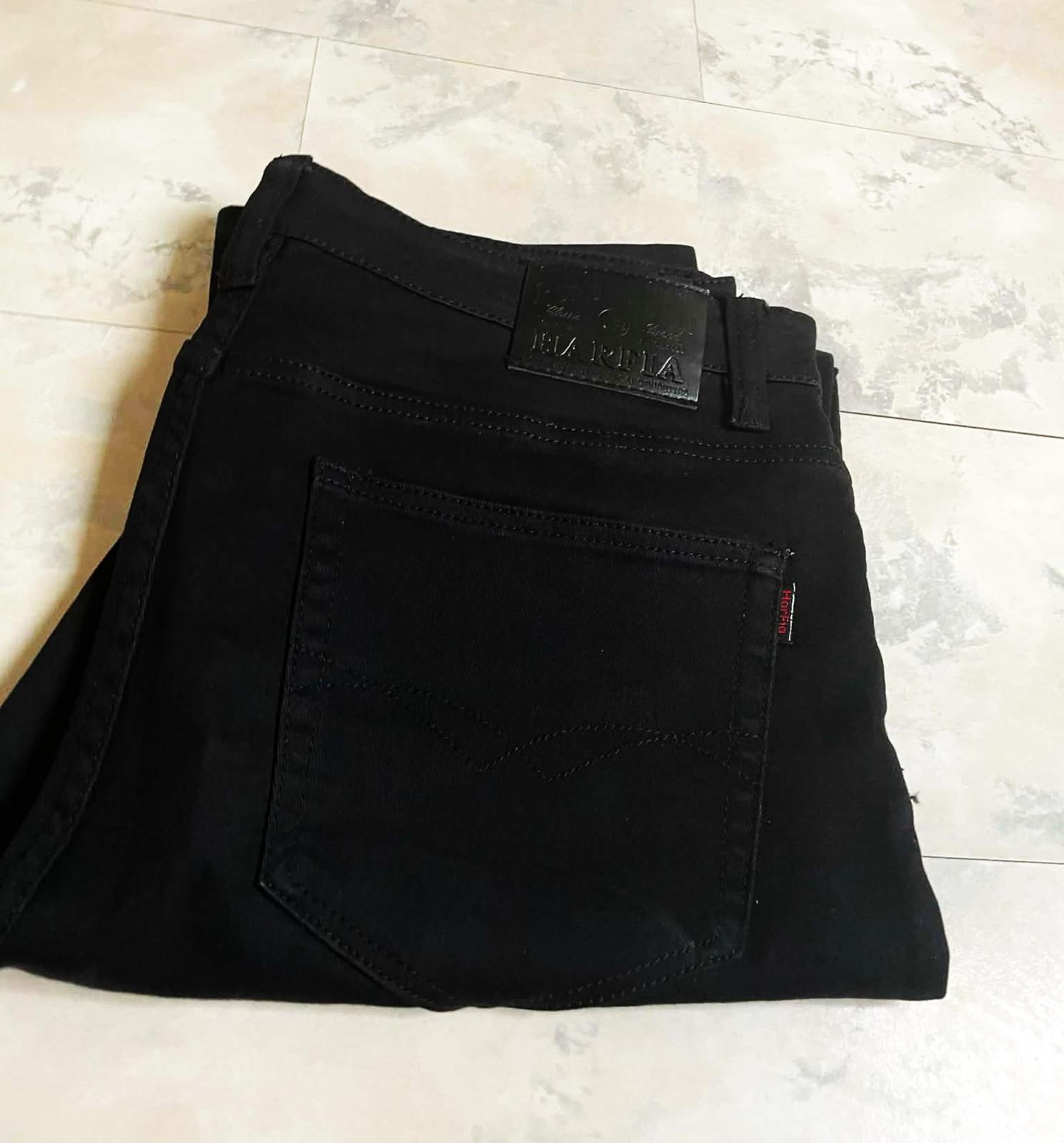 perfektne sadnúce rifle s klasickým pásom,výborný materiál,vďaka spandexu sa nevypchávajú kolená,značka HARPIA, v top stave - ako nové