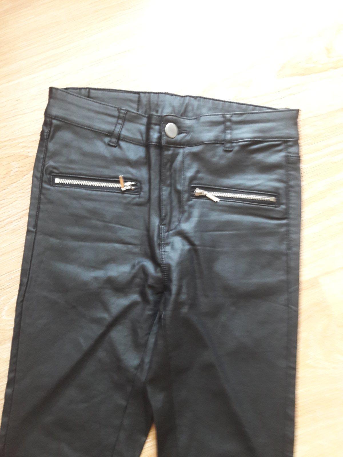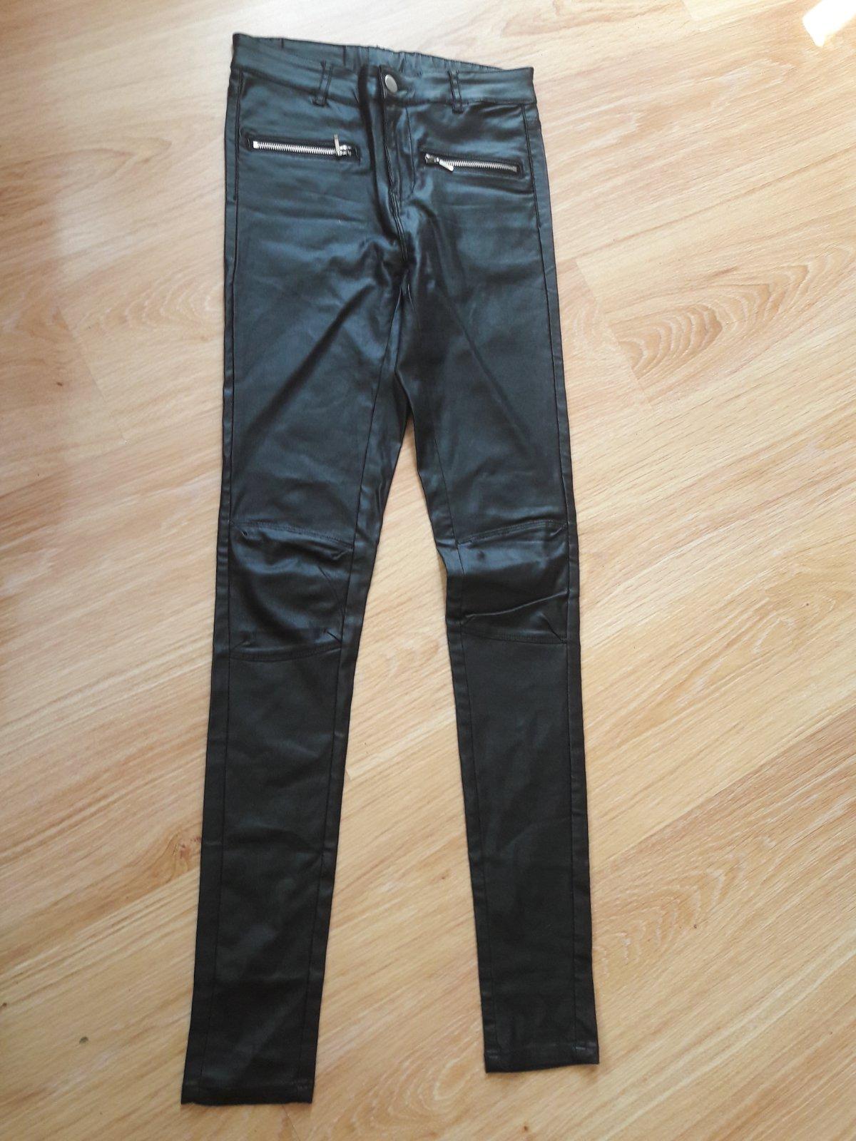 Krásne nohavice s koženým vzhľadom, dĺžka-106 cm ,pas v kľude 2x35.5 cm, boky 2x43 cm---------+pošta