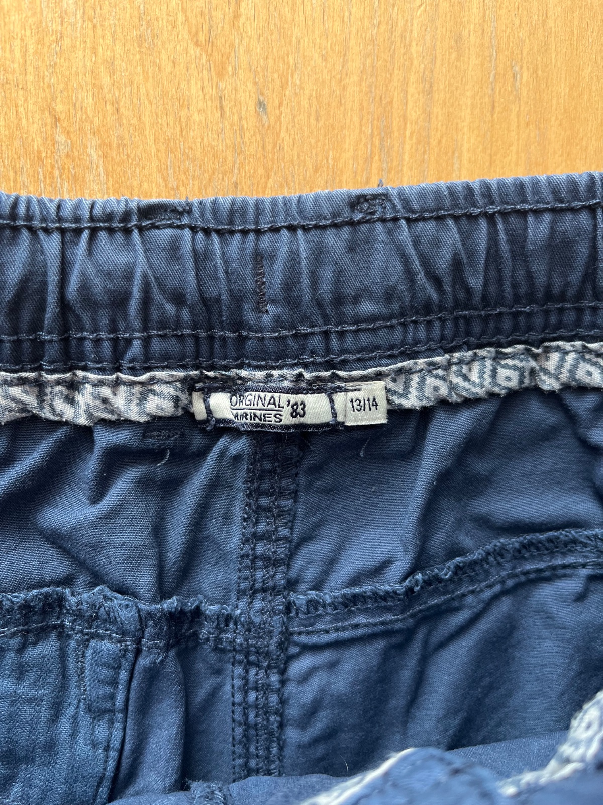 Predam elegantne bavlene nohavice, znacka Original Marines (kupene v Taliansku), velkost 13-14 zodpovedaju skor na 12-13, synovi su kratke - je vysoký). Super stav, 1x oblecene. Bocna dlzka od pasa 92 cm, sirka v pase v pokoji 38 cm, natiahnuté do 42 cm, v pase okrem gombika so zipsom aj stahovacia snurka a guma bez nastavovania. BA - Ruzinov .