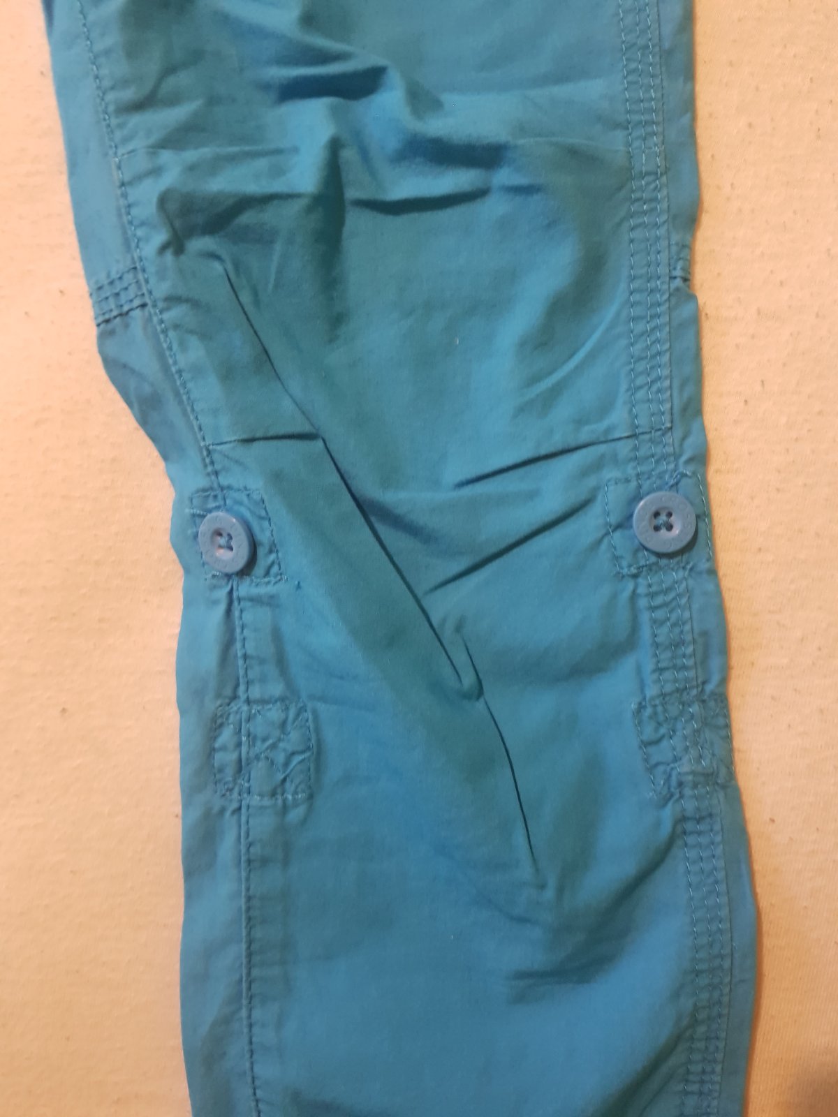 Bez poškodenia.Dajú sa nosiť aj ako kraťasy.