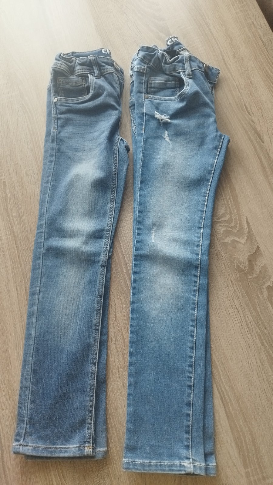 Rifle oboje č. 140. Nastaviteľný pás. Pás meraný v kľude 2x31cm, celková dĺžka 82cm, vnútorna dĺžka 60-61cm. Na jedných na stehne trošku vytrhnuté, viď. Foto. Dobrý nosený stav. Len spolu.