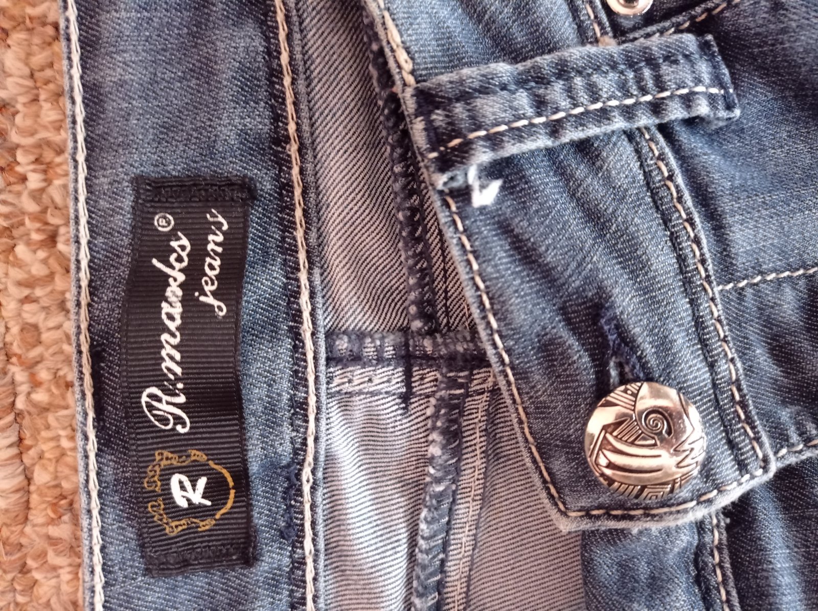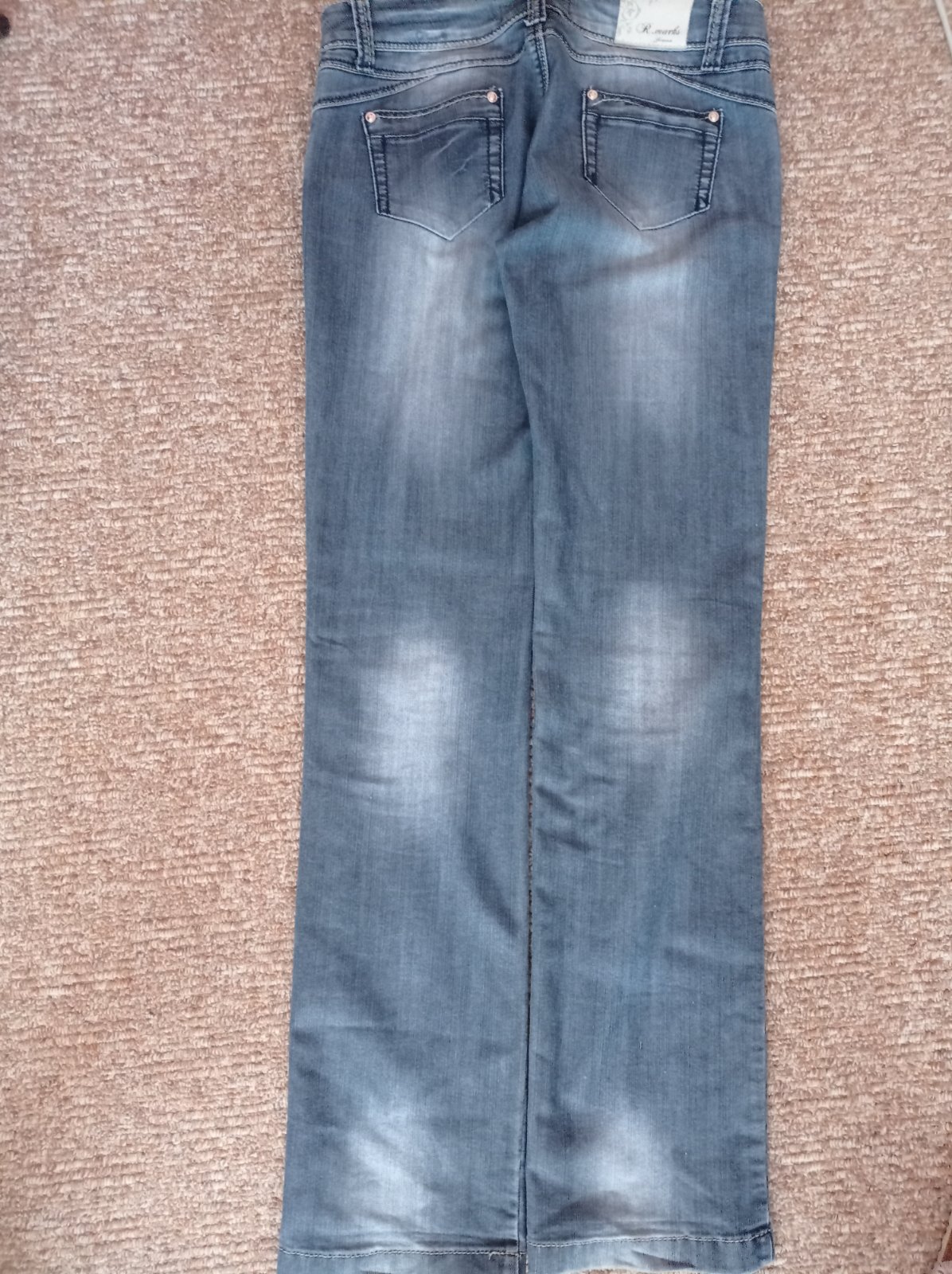 Bledomodré rifle s vypraným efektom, bez poškodenia, výborný stav. Dĺžka 105 cm.