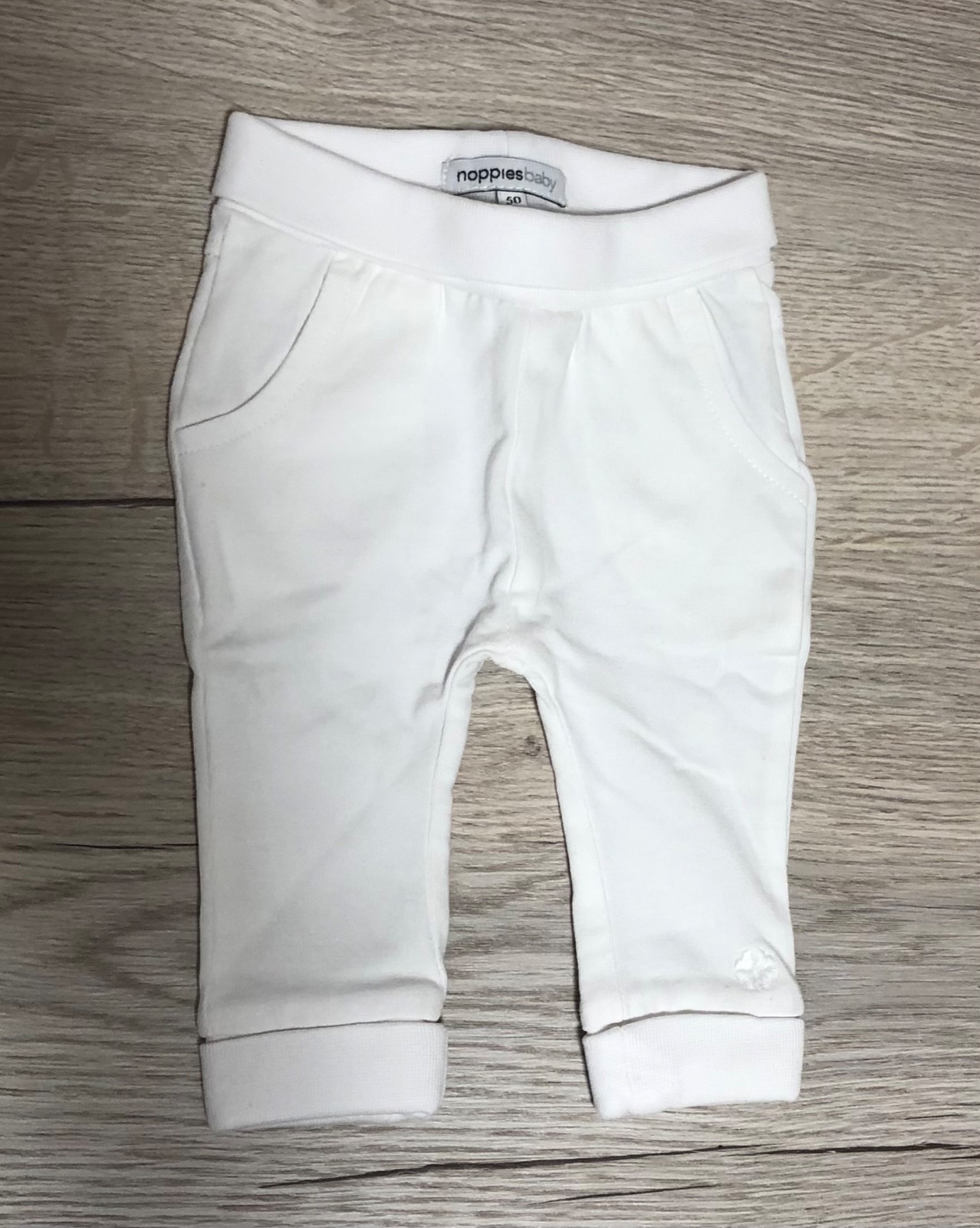 Predám nové tepláky zn.NOPPIES v bielej farbe, veľ.50. Tovar 1x opratý v detskom prášku Frosch. Cena 7€ (plus poštovné).