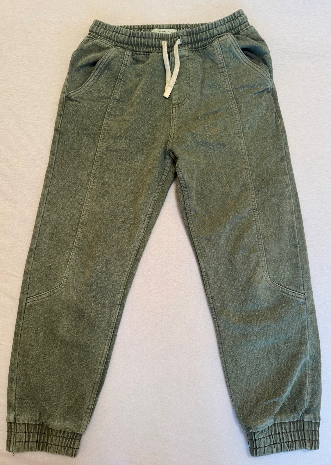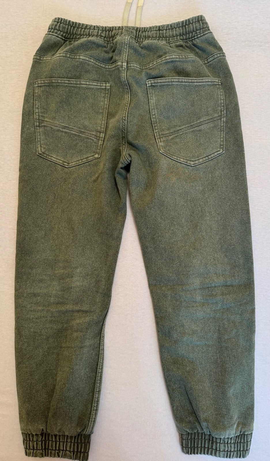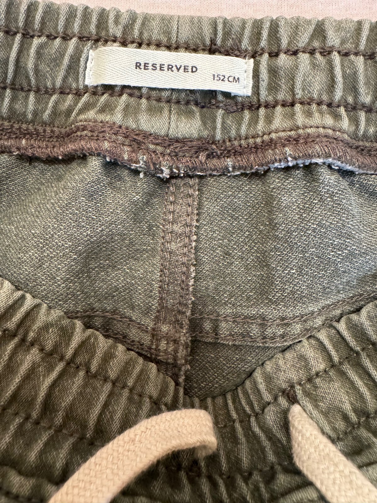 Málo nosené rifľové nohavice, mäkký materiál, dolu na gumičku a na zaťahovanie v páse. Pekný nosený stav, bez poškodení. Veľ. 152 zodpovedá.
