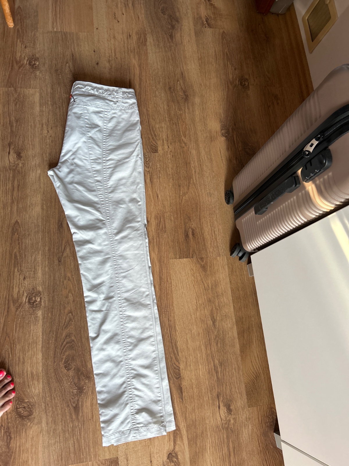 – Dámske, svetlo-krémové, so stretch pásom (gumička vzadu v strede), relaxed/wide-leg strih, bez opasku, s čistým dizajnom a skrytými vreckami.