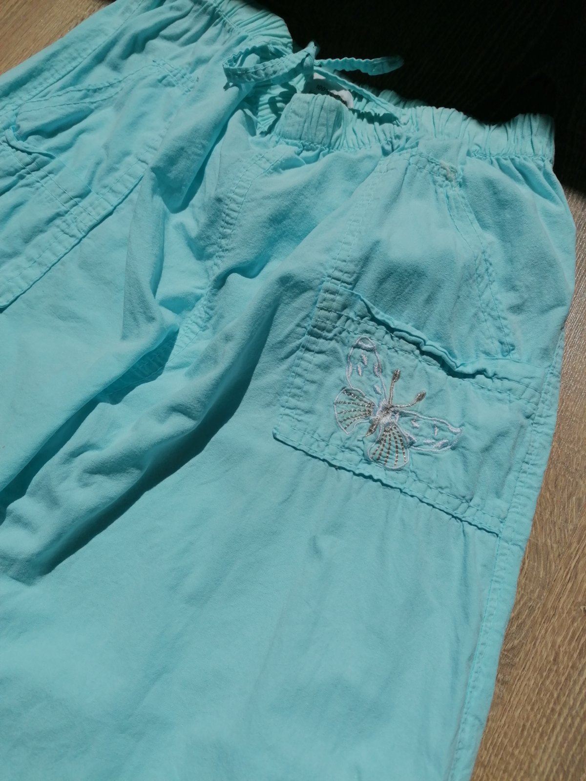 Pekné,tenké kárované nohavice v super stave. Dajú sa zrolovat na 3/4- ve. Pridam k nim ružové.