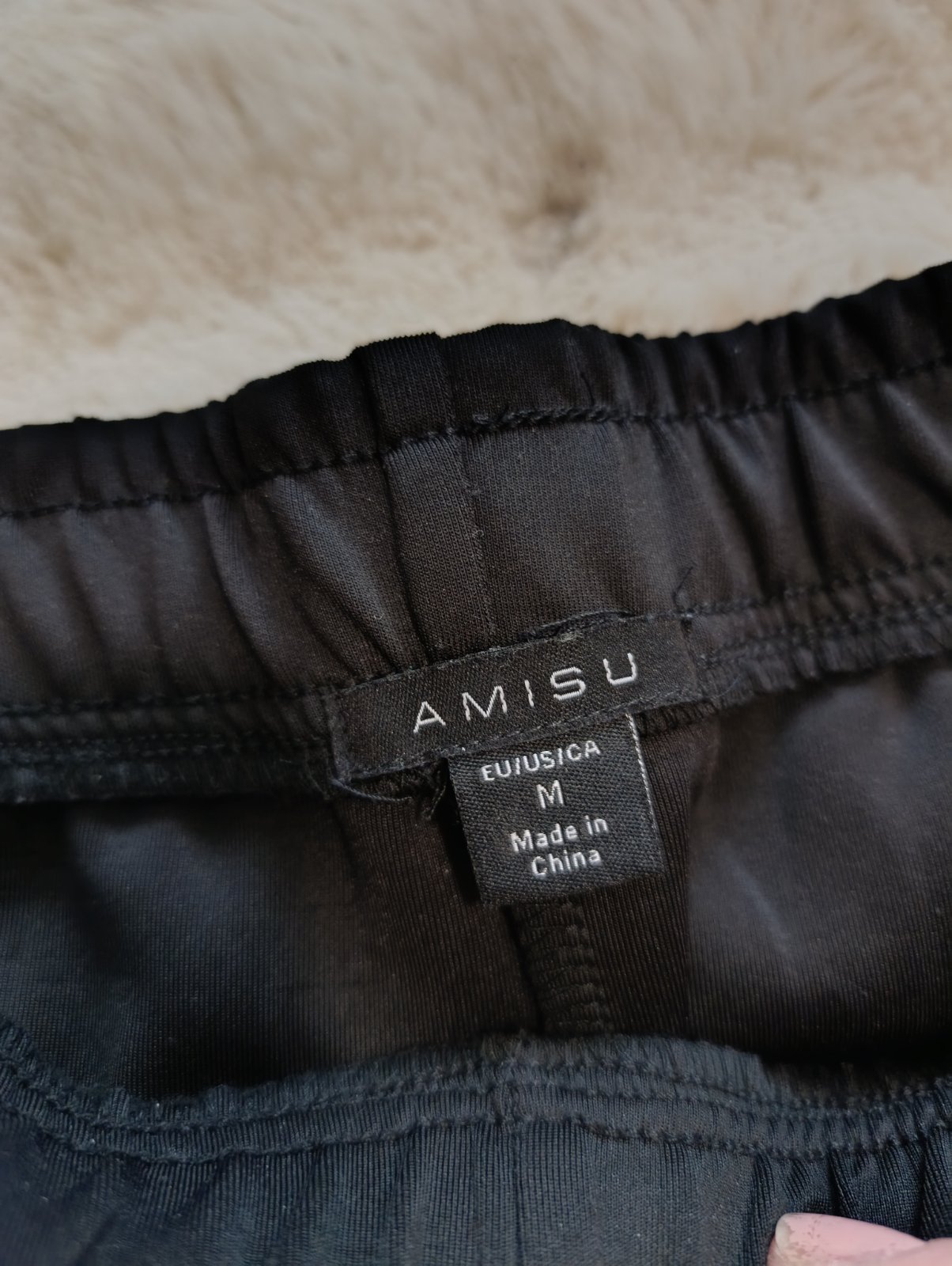 Elasticke čierne koženkove matne nohavice amisu v dobrom stave bez vad,v.pisana -34,ale skor S/M š.pas-35-42cmx2,dlž.-94cm
