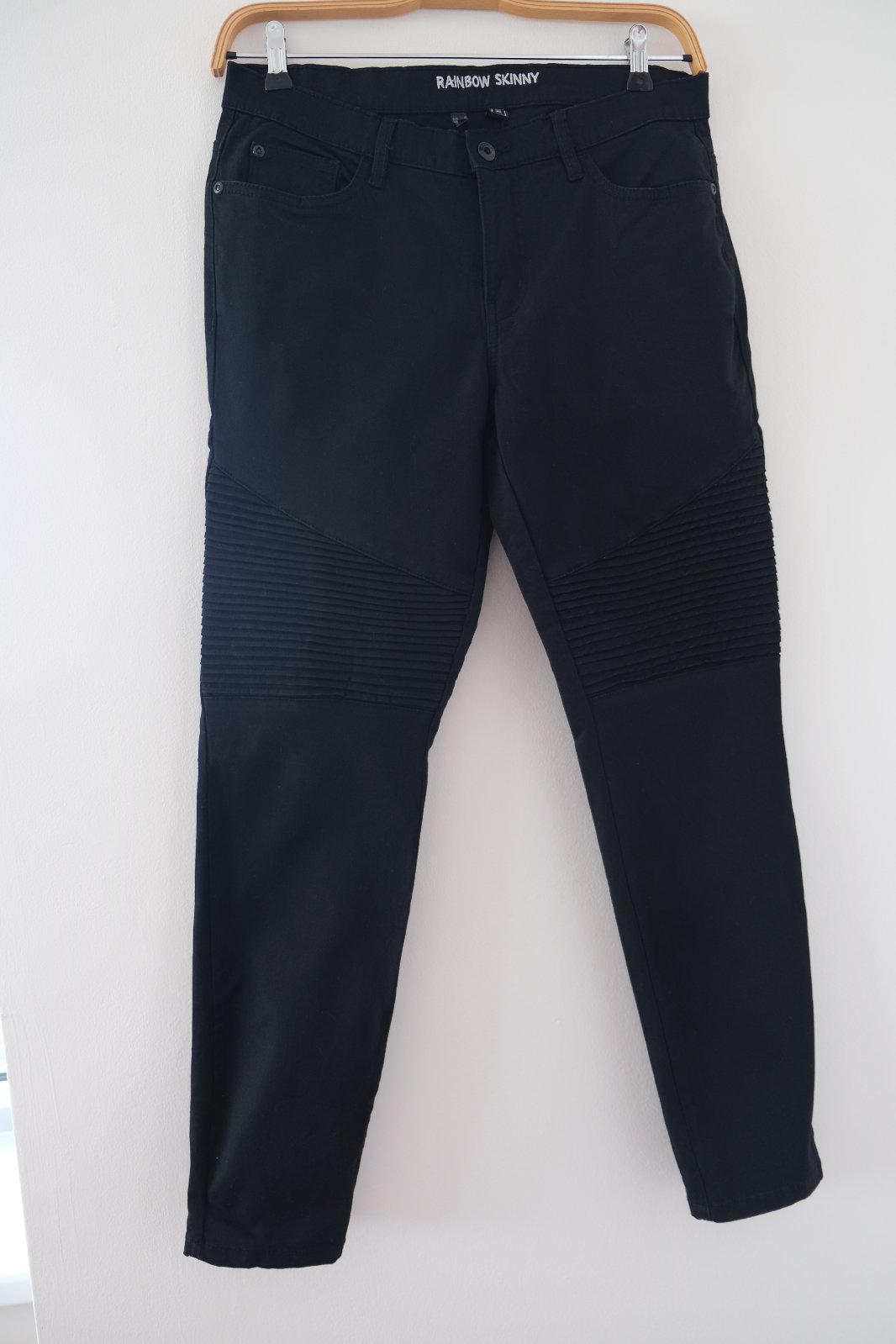 ✨ Popis tovaru: Úzke skinny 5 vreckové nohavice prešívané na kolenách nie moc hrubé podobné ako rifle ,pevná látka s elastanom ako bengalin