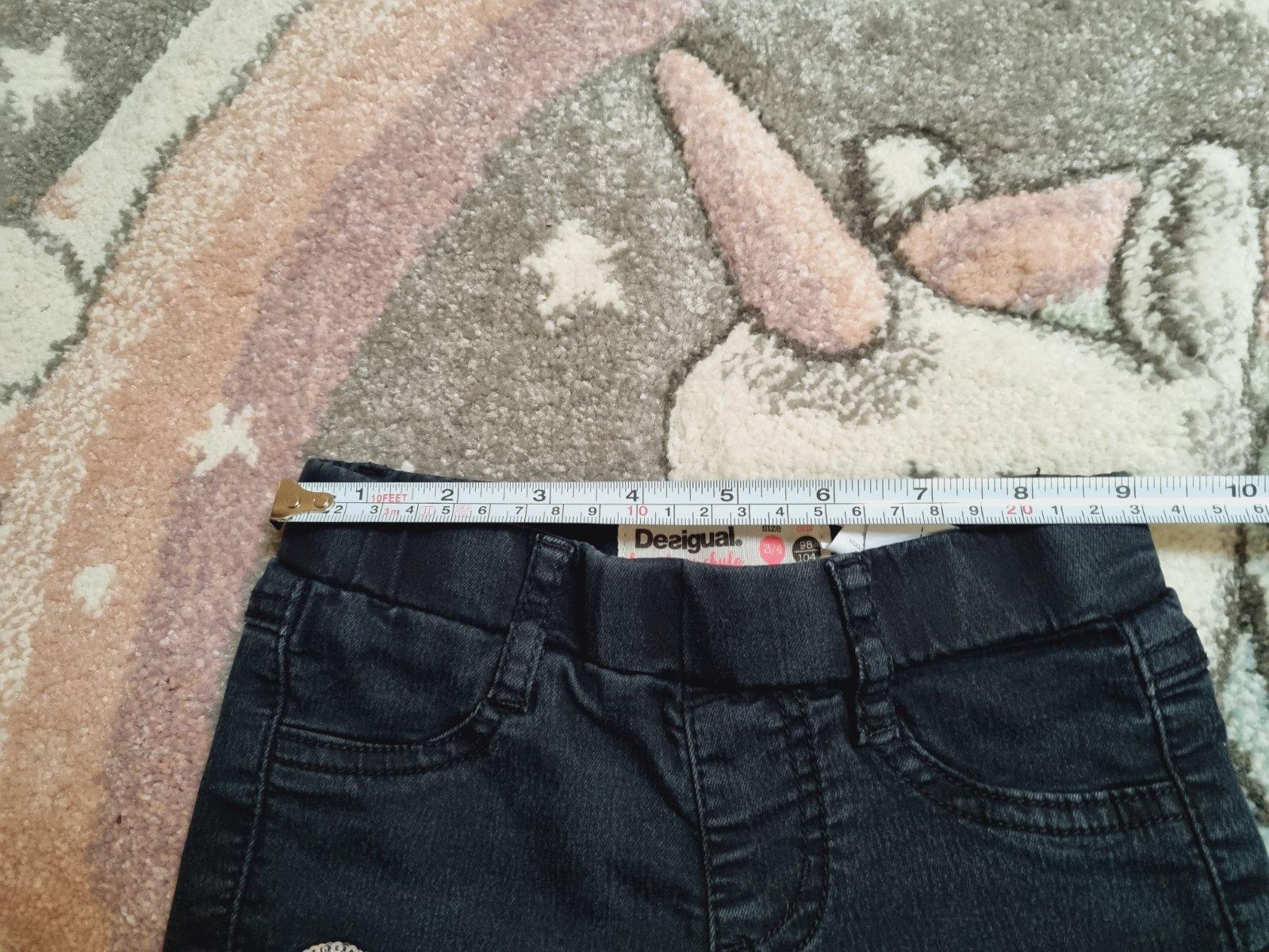 Super rifle nezuzene s vysitymi srdieckami na kolenach, prijemny material, v pase stahovatelne vo vynikajucom stave.