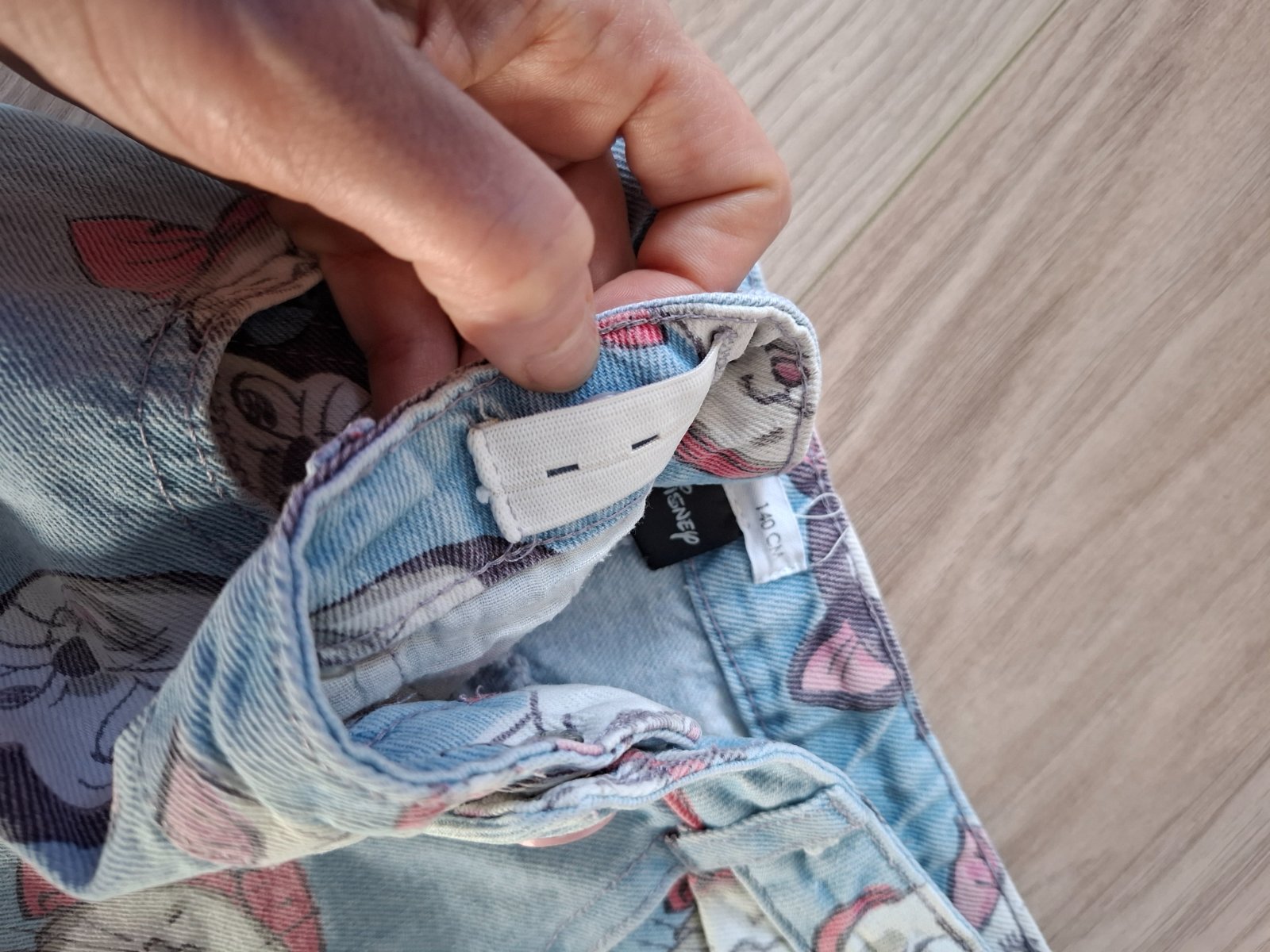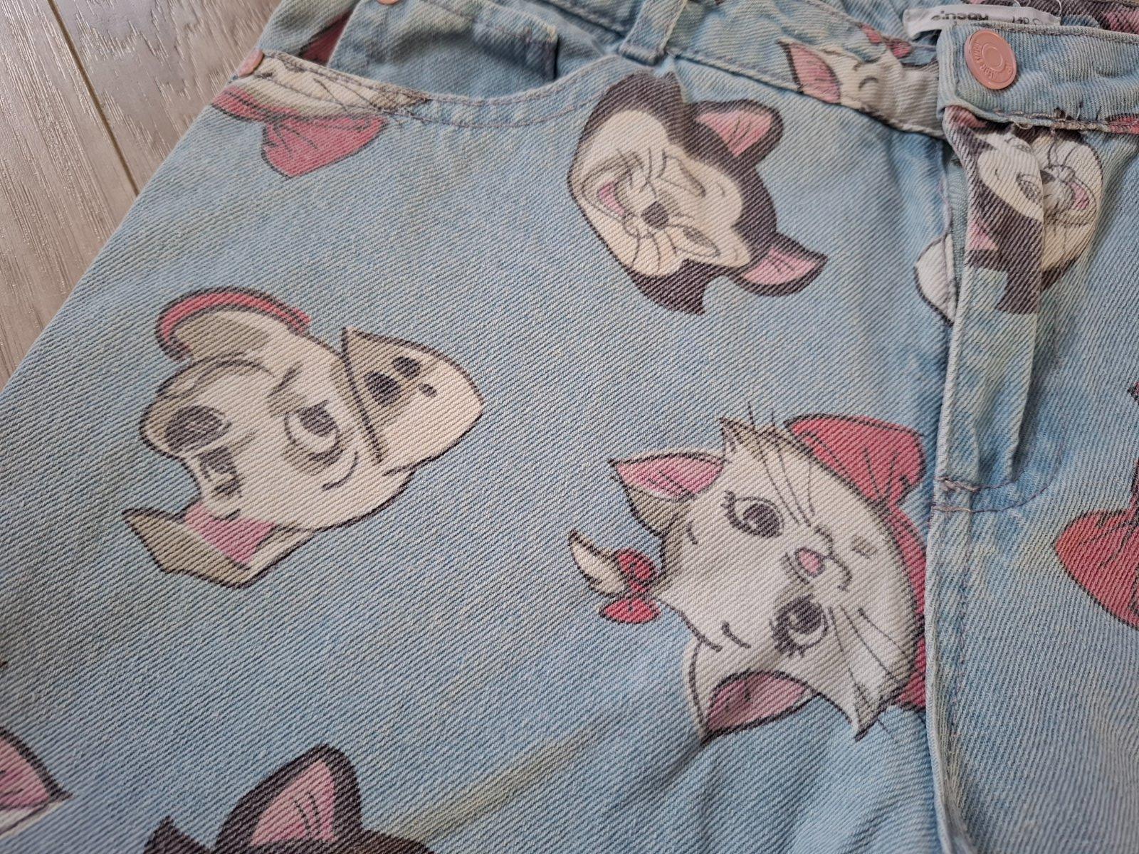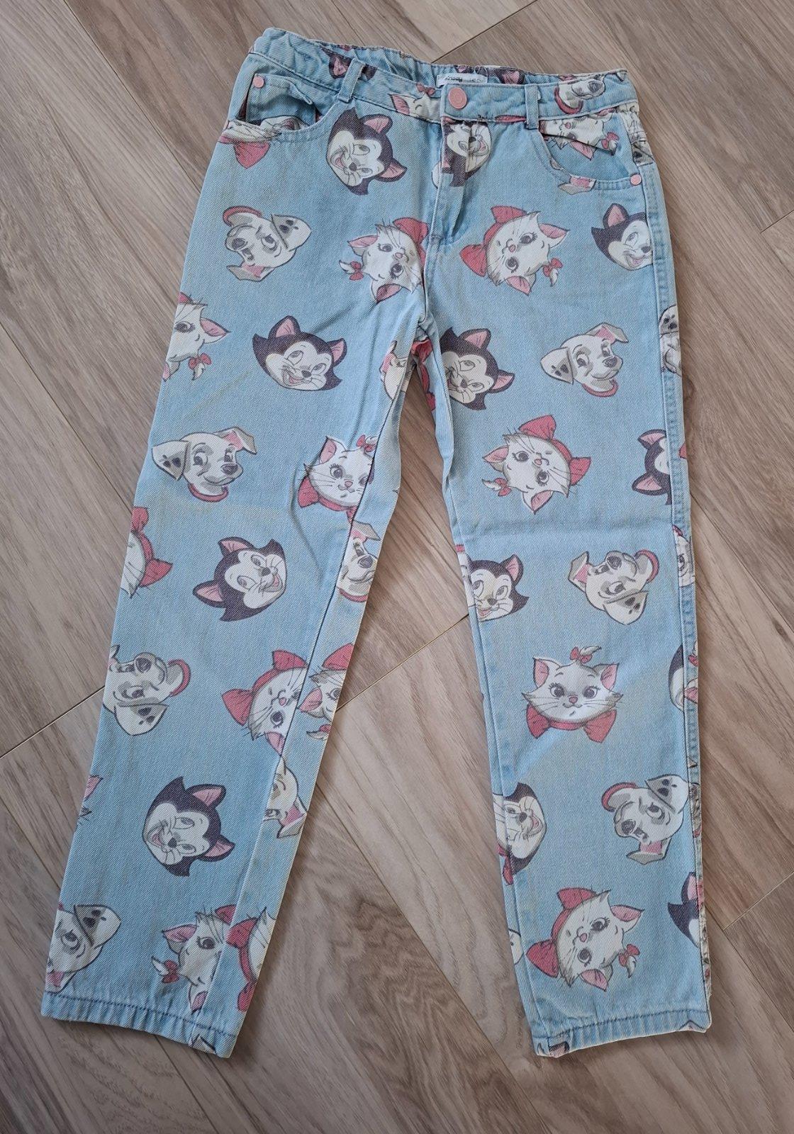 Krásne bledomodré rifličky, širší strih, motív disneho rozprávky Mačky Aristokratky.. nastaviteľný pás..