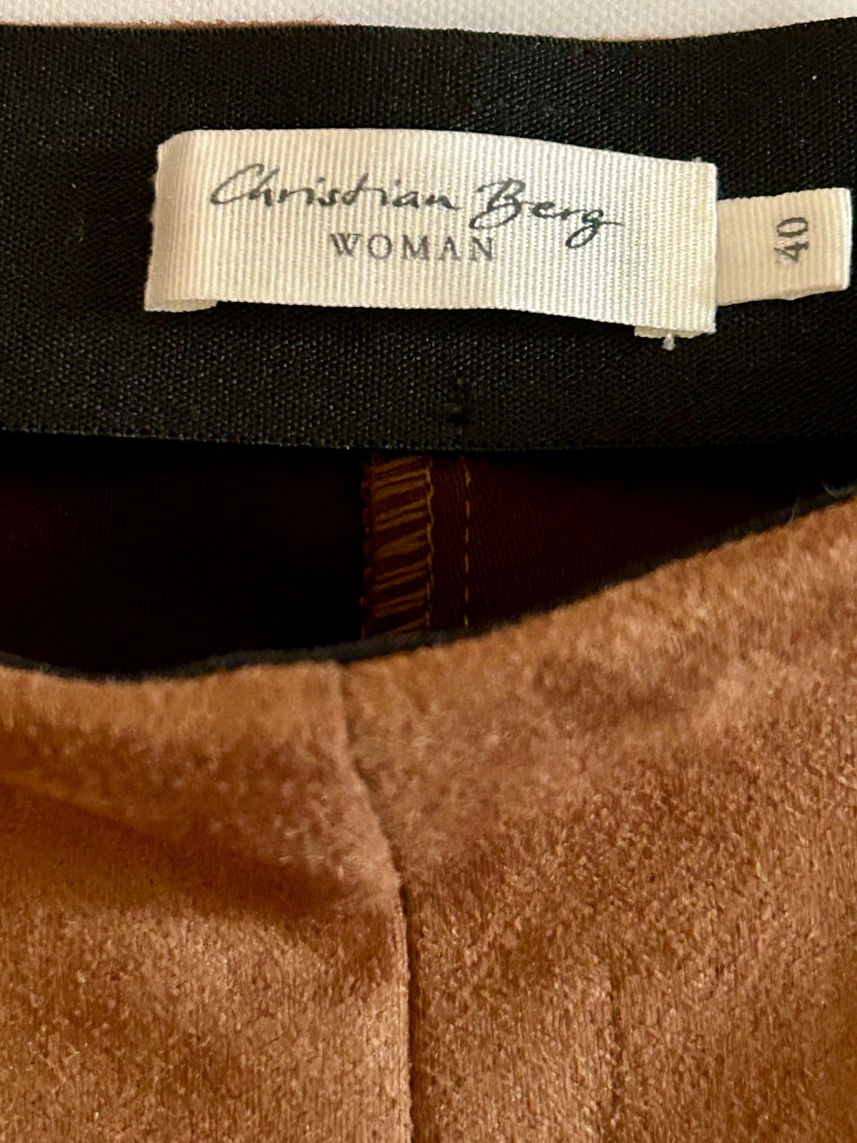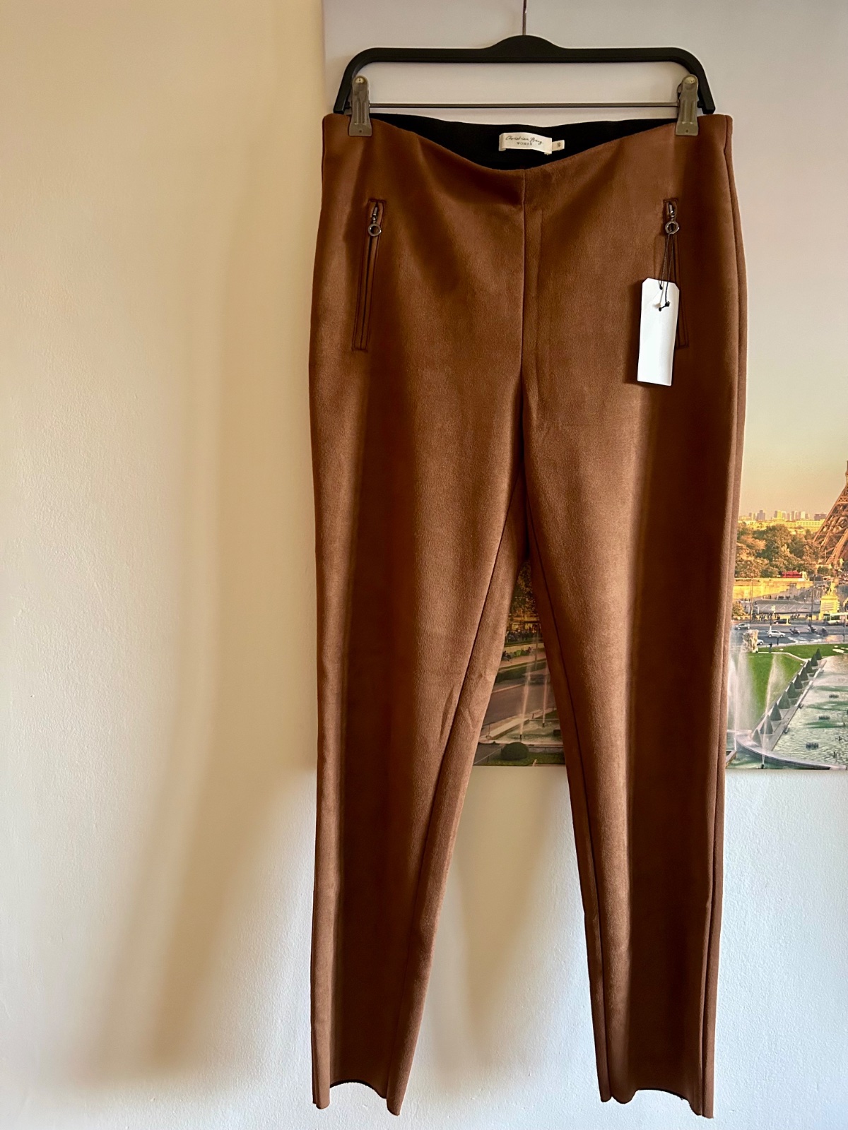 Predám nenosené nohavice rovného strihu zn.CHRISTIAN BERG, kúpené v Peek & Cloppenburg, veľmi príjemné na telo, efekt jelenicového materiálu, tmavá škoricovo-hnedá farba, ktorá je trendom tejto zimy, funkčné predné vrecká na zips, pás na vnútornú širokú gumu. Veľkosť 40, rozmery: pás pred natiahnutím: 42x2 cm, dĺžka: 100 cm. Pôvodná cena bola 49,90 EUR. BA alebo poštou+poštovné.