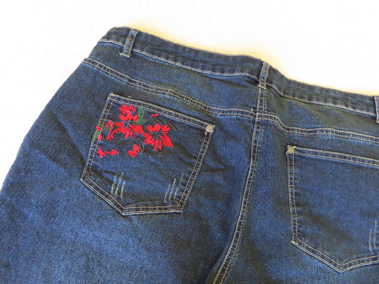 Rifle majú vpredu aj vzadu decentné výšivky, sú mierne elastické, prispôsobia sa postave.