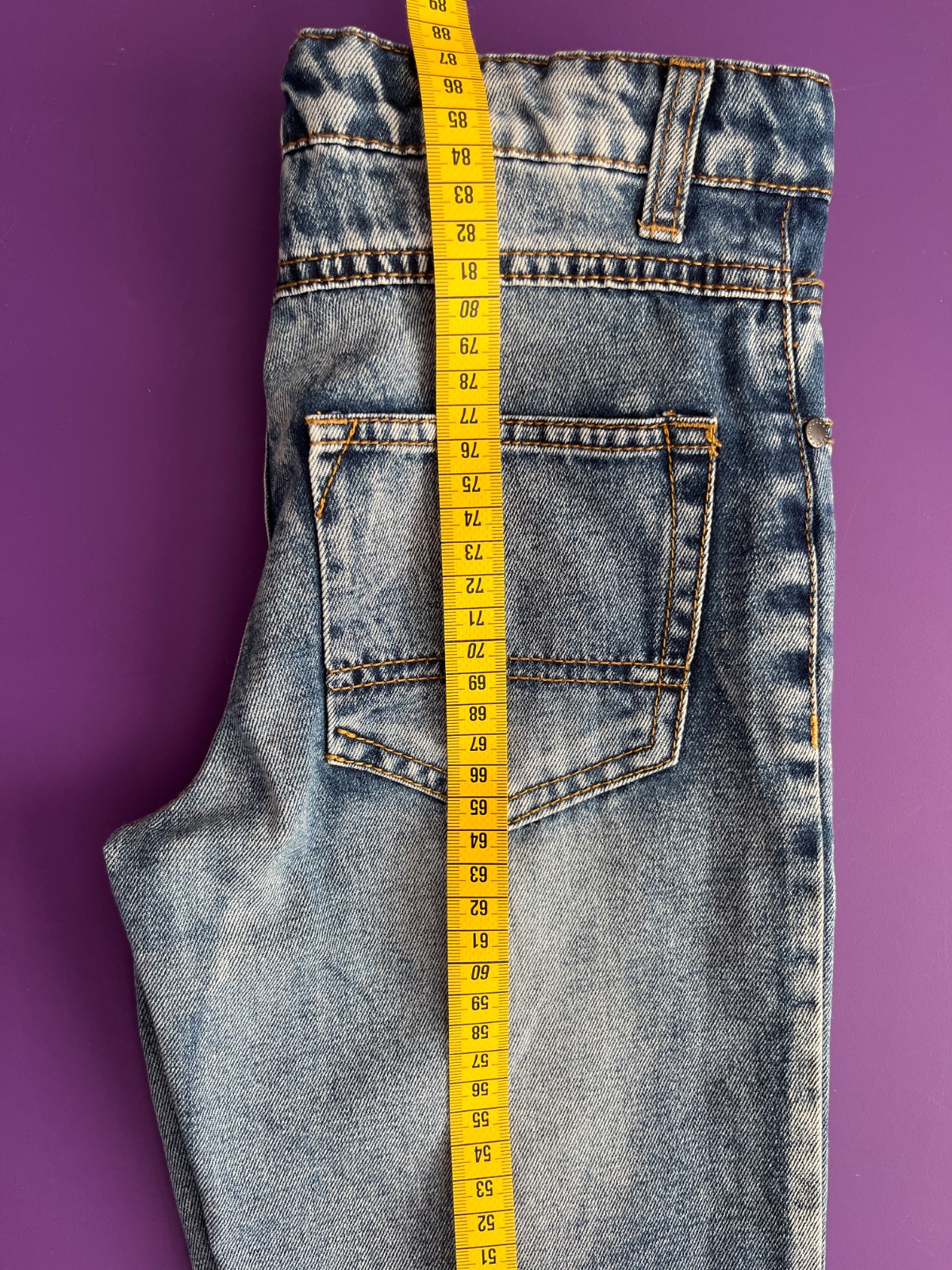 Predám raz oblečené rifle v top stave. Problémom je nesprávne číslovanie - oficiálna veľkosť je 146, ale sú menšie (pozrite rozmery). Pás je regulovateľný, rifle sú veľmi pekné a pohodlné.