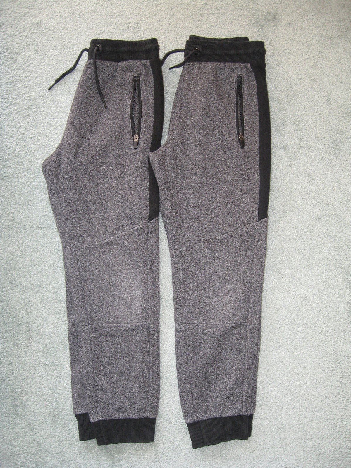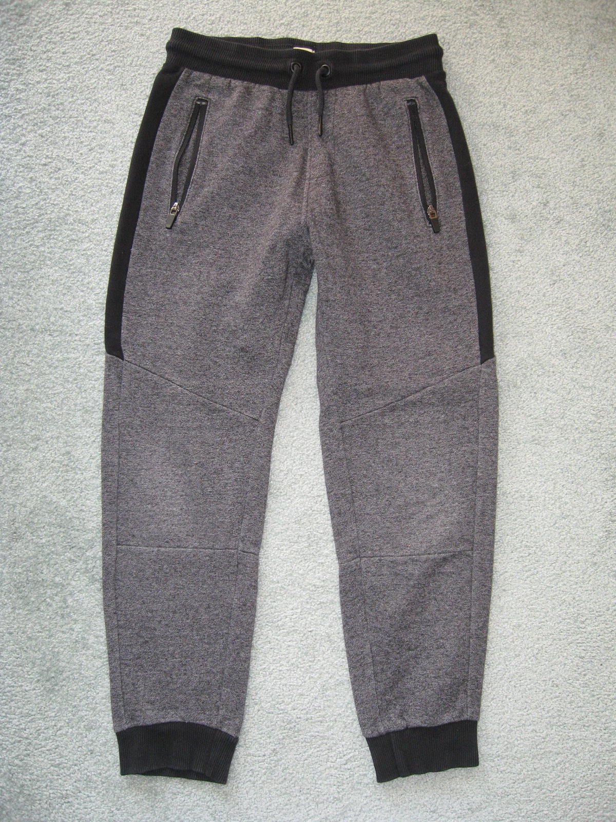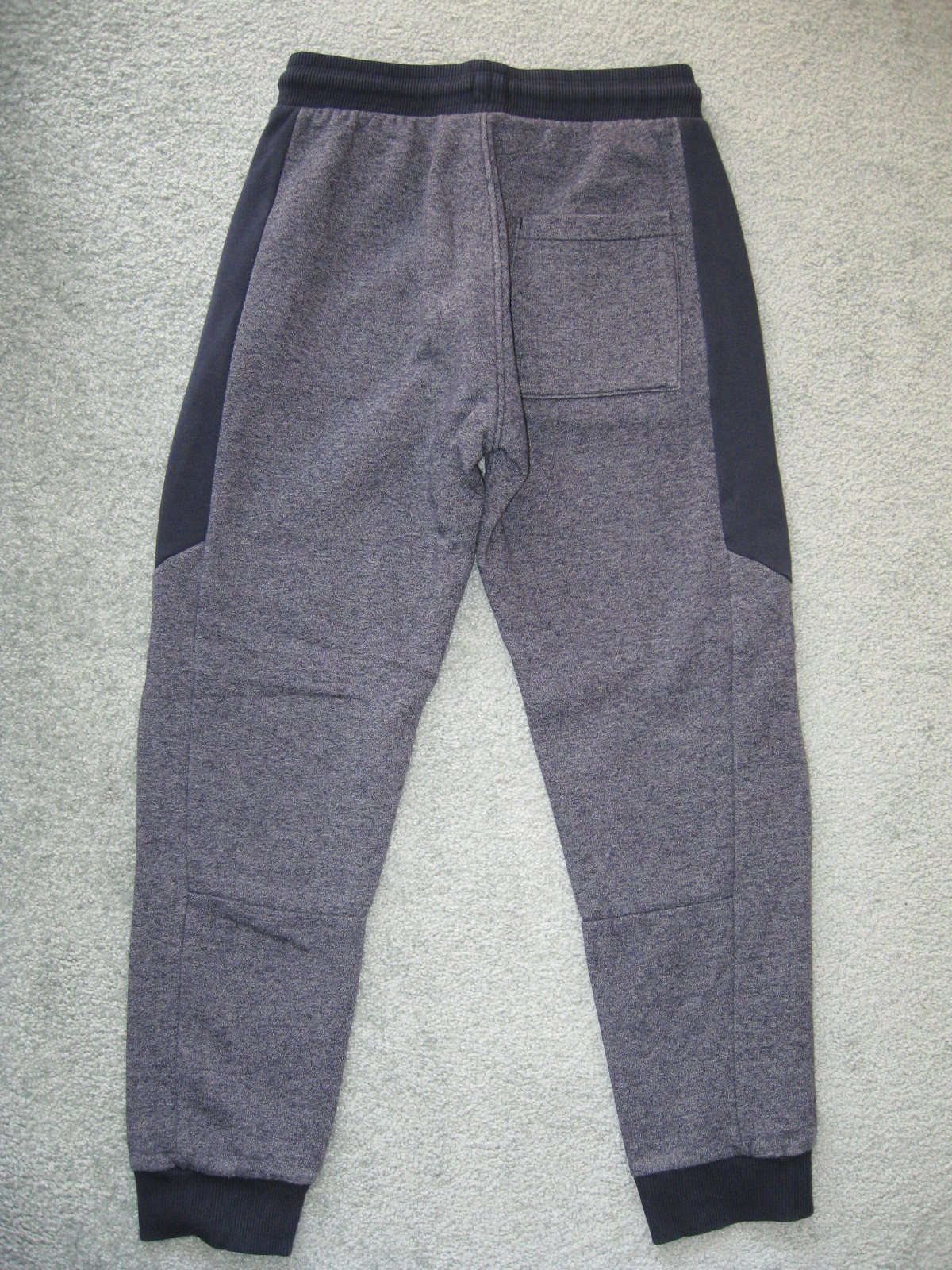 tepláky sú v dobrom nosenom stave po jednom dietati, na kolenách vidiet nosenie viac, ale nie sú prederavené, sú len na kolenách mierne oslabené..na niektorých miestach sú minižmolky.. veľkosť je 140-146, rozmery sú dĺžka 85cm, v páse majú 32cmx2, natiahnu sa do 34cm, v páse je tiež guma a dajú sa stiahnut šnúrkou, cena je 2eur za ks