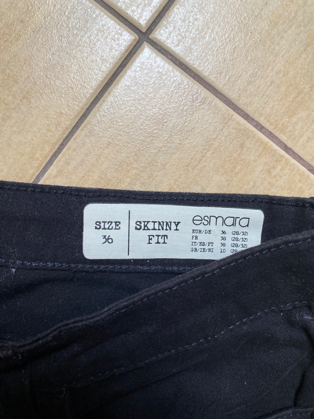 1-2 x oblečené dámske skinny džínsy veľ. 36, šírka v páse 35 cm, dĺžka od rozkroku 78 cm, celková dĺžka 100 cm. Na jednej nohavici sotva postrehnuteľný cca 3 mm svetlejší fliačik.