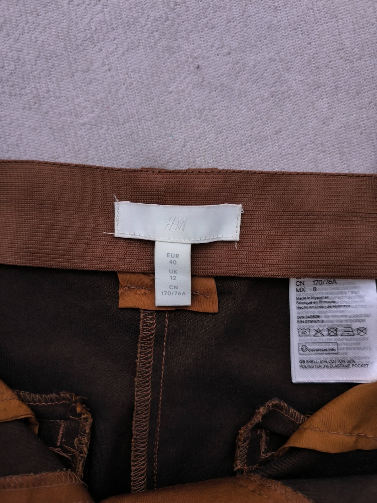 Hnedé nohavice COLOURS - 40, pás 45 až 48x2cm, boky 54 až 58x2cm, d 92-68cm, sedy 21a33cm