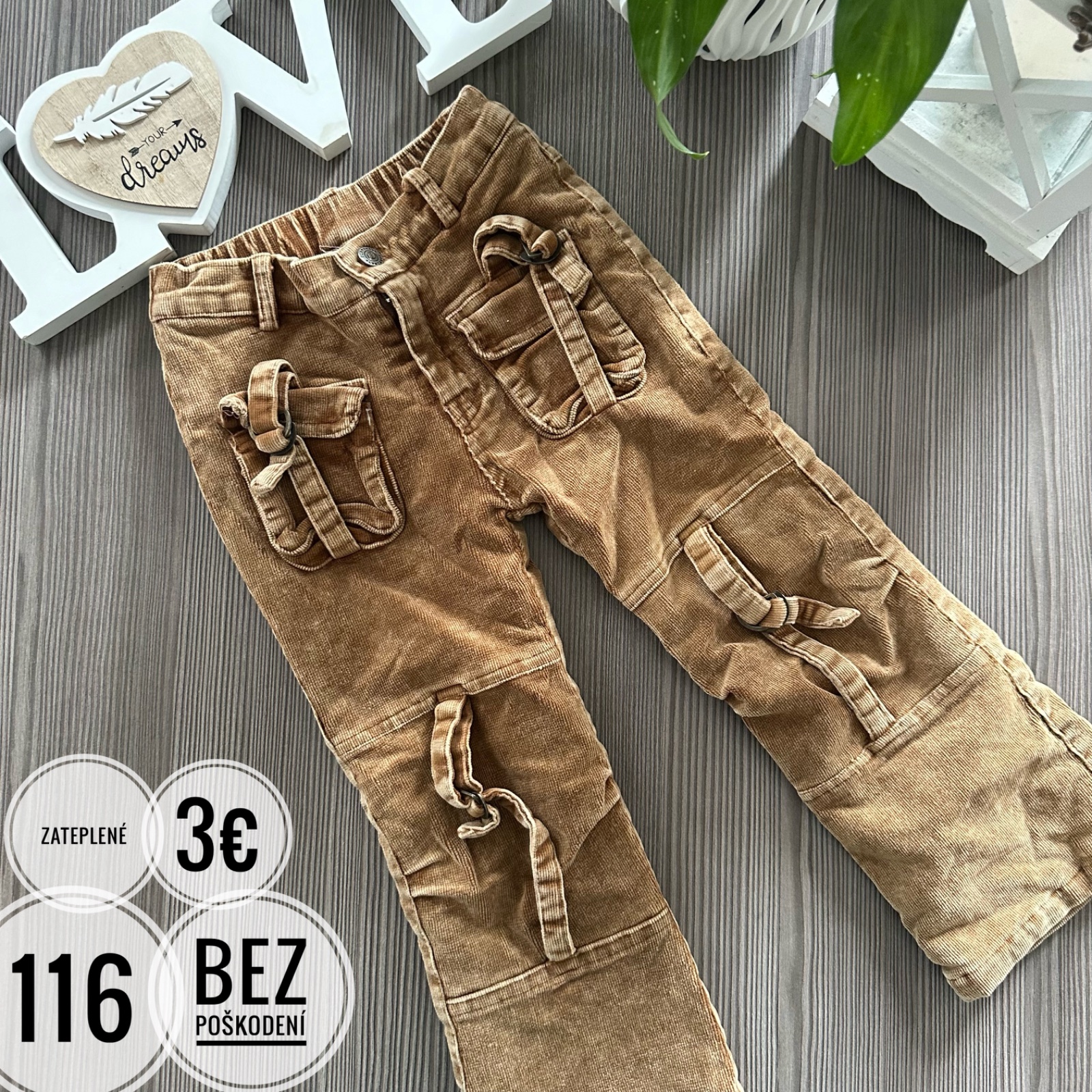 dievčenské menčestráky veľ. 116 bez zapínania - v páse nastaviteľná guma zadné vrecká funkčné - predné len naznačené pohodlný mäkký materiá bez poškodení - po 1 dieťatku dĺžka nohavice 68 cm vn...