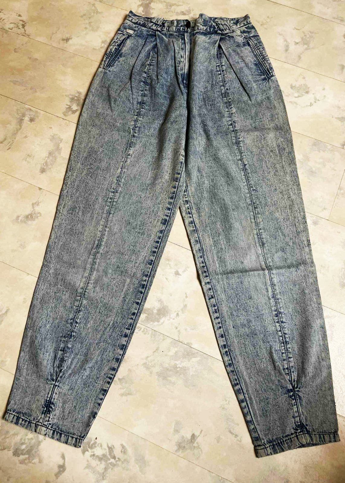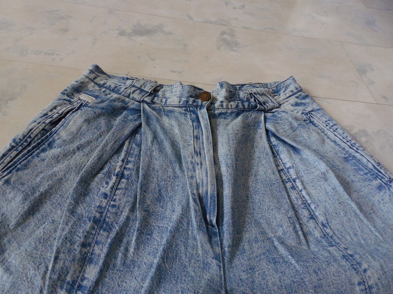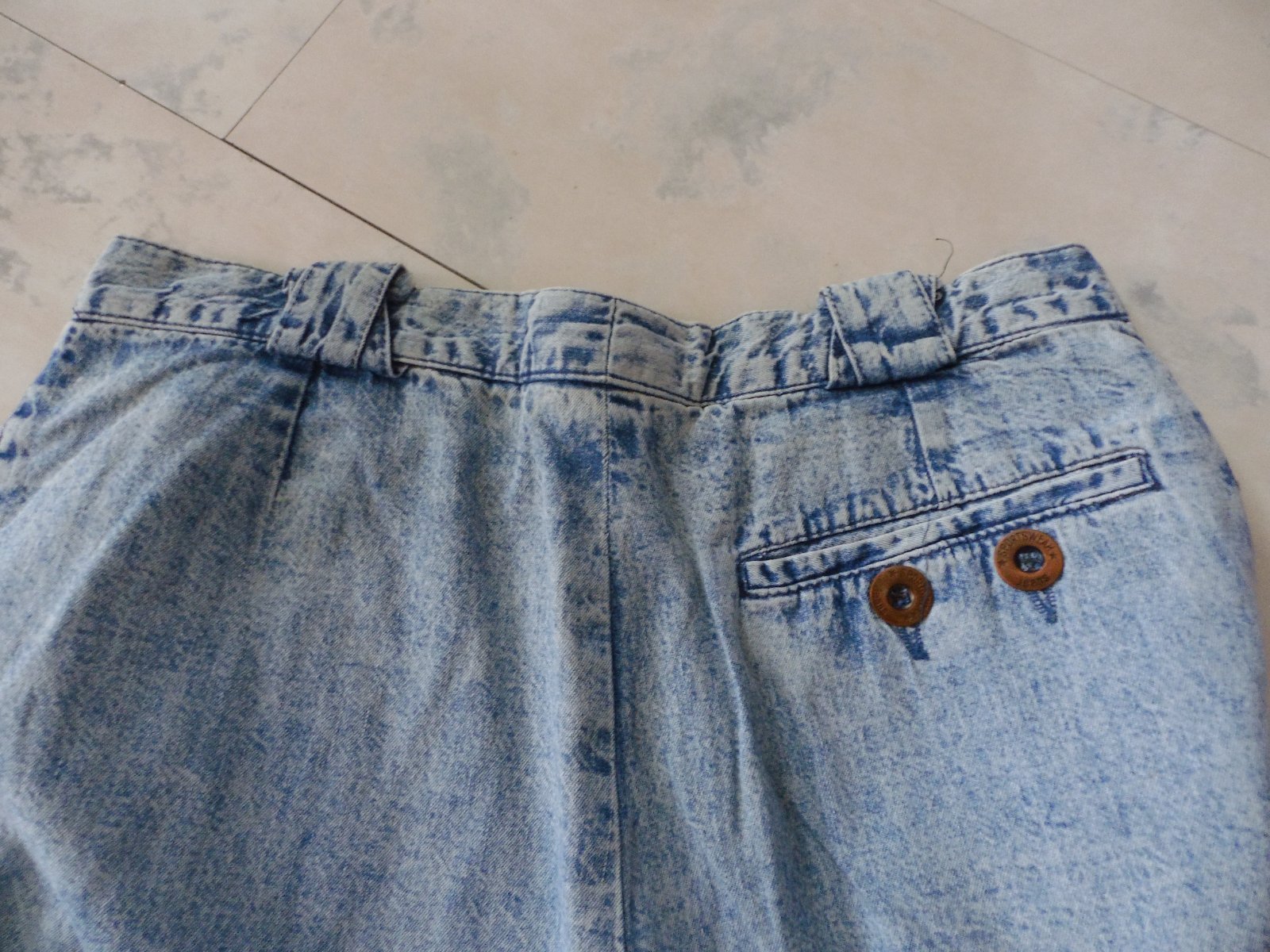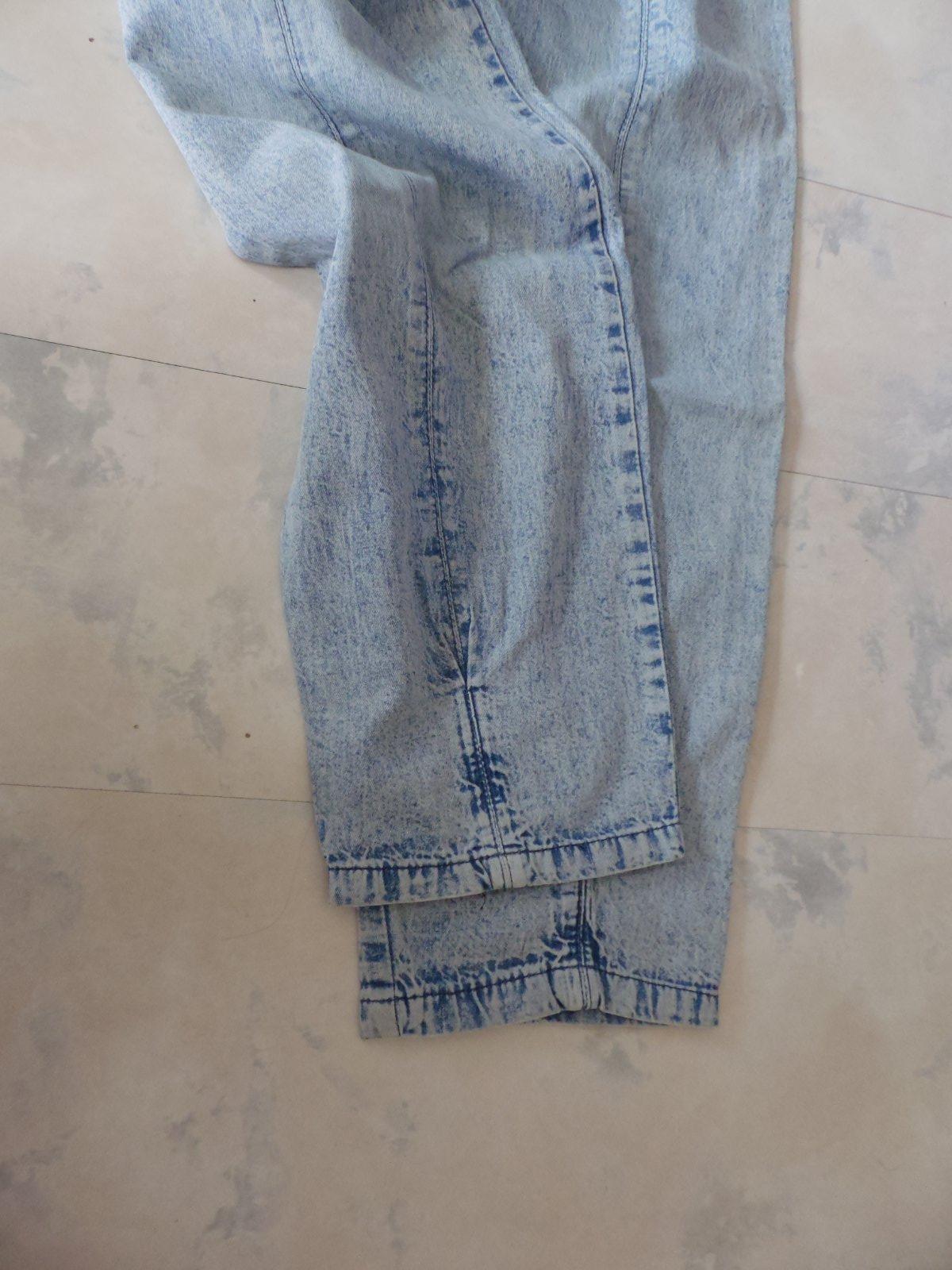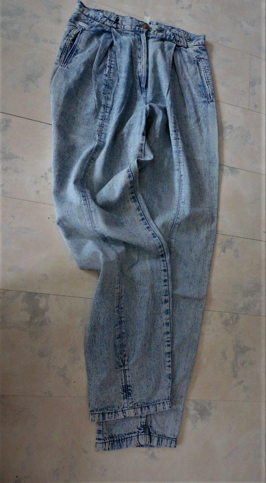 plátenné tenké letné rifle,nosené ale neznosené,rozmery : pás ( vysoký ) = 38 x 2 cm, boky = 58 x 2 cm, predný sed = 32 cm, zadný sed = 42/43 cm,vonk. dlžka nohavíc = 108 cm, vnút. dlžka nohy = 80 cm