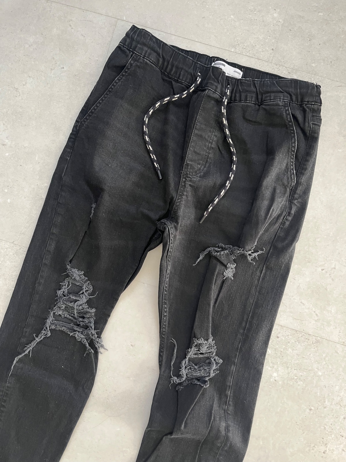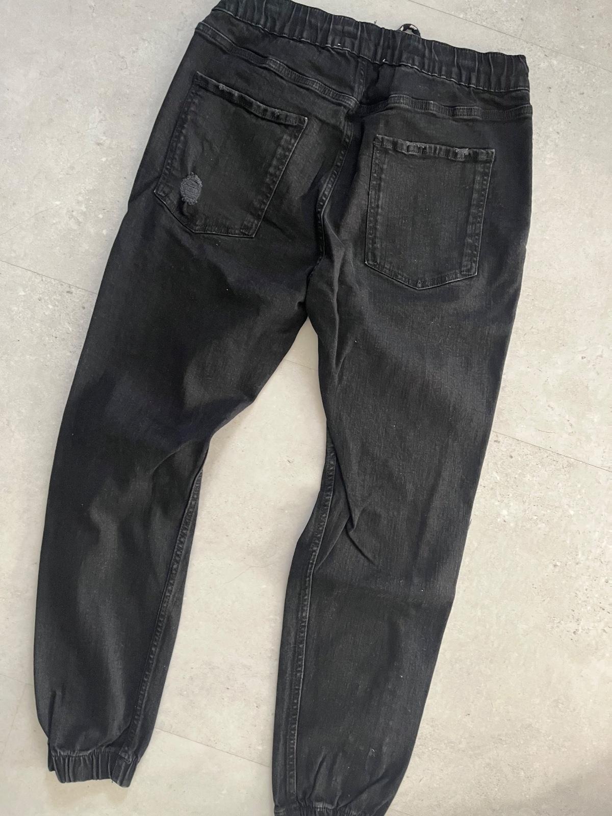 bez poškodenia, min. nosene, elastická príjemná riflovina, klasicky rovný strih, farba tmavo šedá, kupovane za 28€ Rozmer: pas 42x2 v klude pred./zad. sed 26/36cm boky 52x2 dl.101/78cm