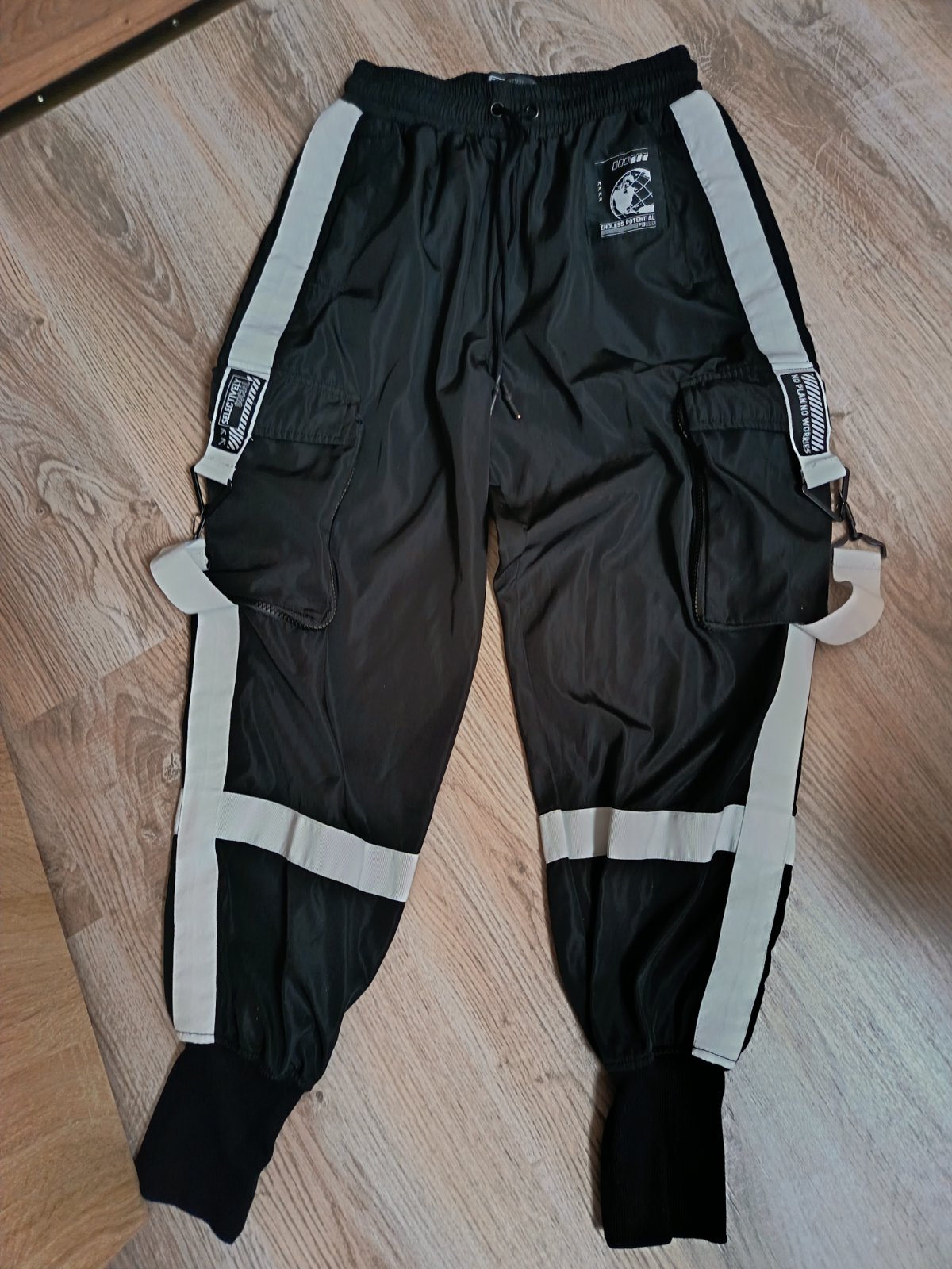 Nosené minimálne, v dobrom stave. Nohavice sú z elastického materiálu, sedia príjemne na tele. Na páse majú gumu.