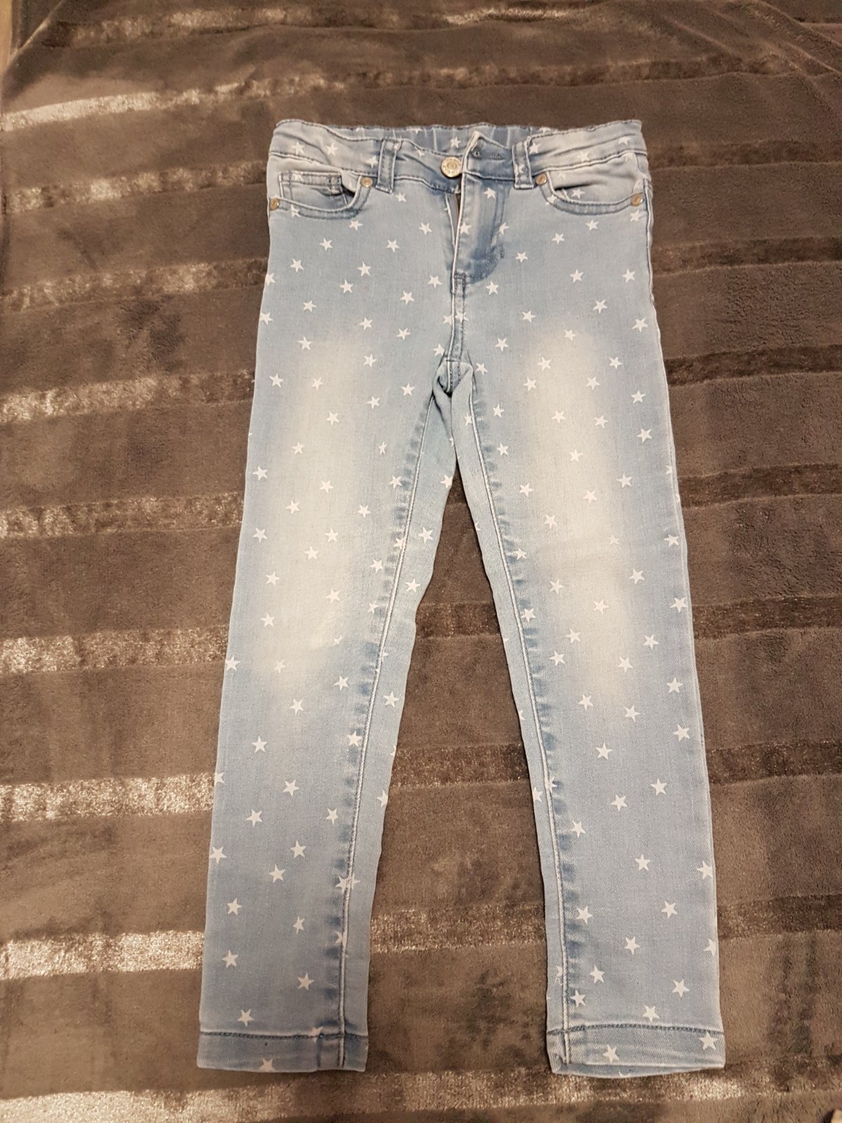 Ponúkam na predaj dievčenské hviezdičkové rifle veľkosť 110, majú jeden malý fliačik (pridaná detailná foto). Cena 3e plus poštovné.
