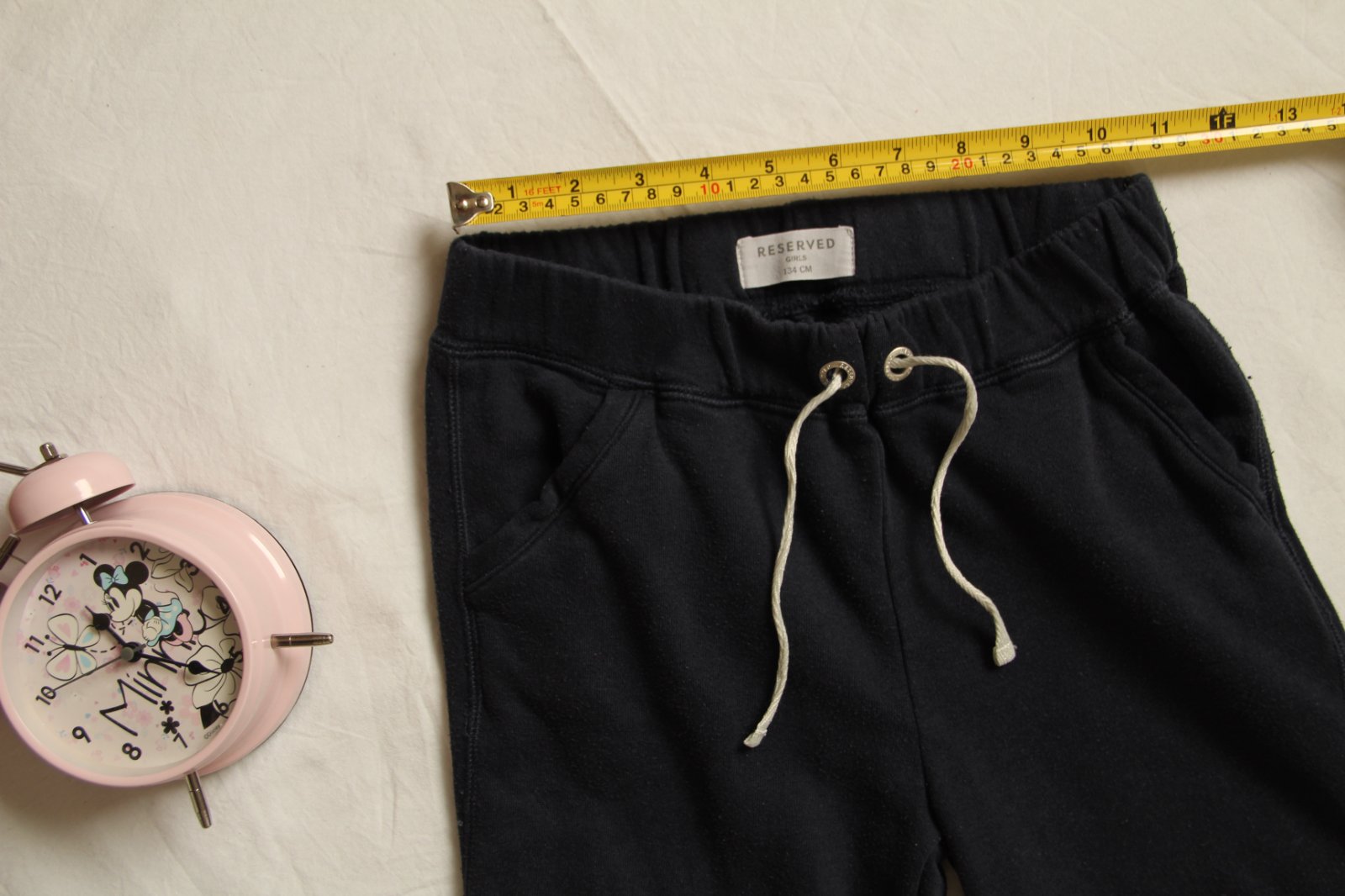V páse je šnúrka je estetická, tepláky sú v super stave. Výrobca udáva veľkosť 134, no podľa rozmerov zaraďujem do 128.