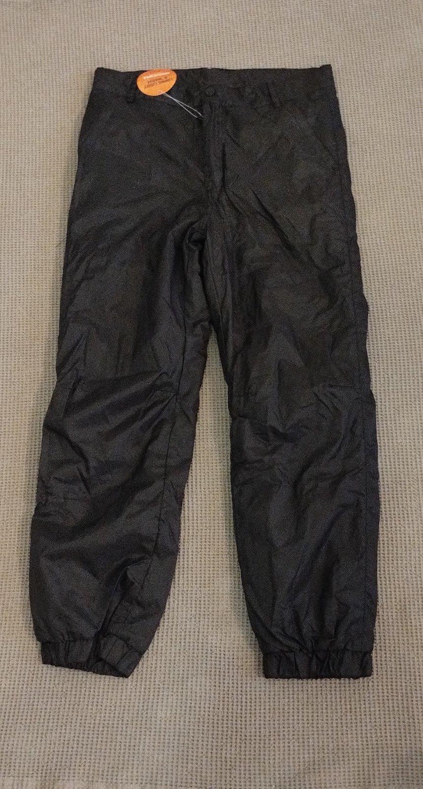 Teplé nohavice na zimné obdobie, nie sú však nepremokavé. Zvonka šuštiak, zvnútra fleesová podšívka, v 100% tnom stave, nevynosili sme. Pás je 36,5cm,pás je regulovateľný gumičkou s gombíkom...dĺžka 87cm.