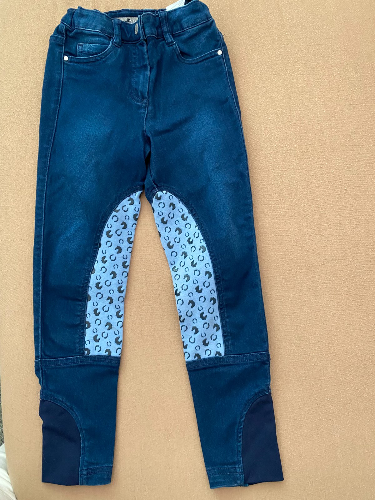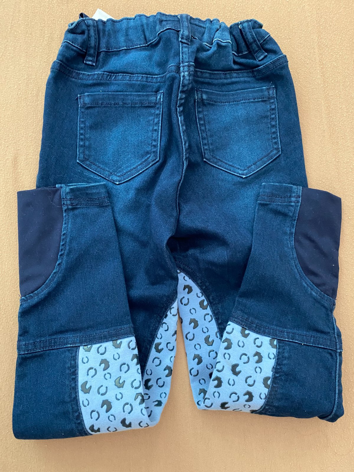 Modré rifle klasického strihu, s farebnou aplikáciou.