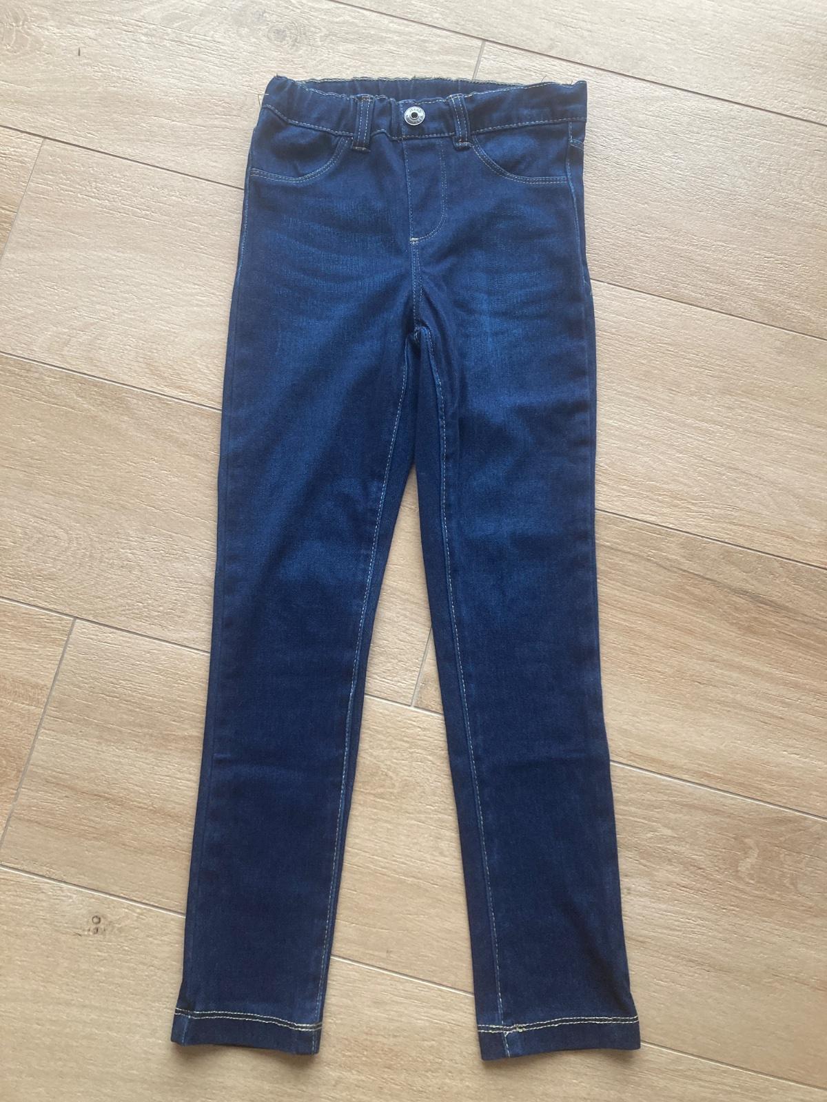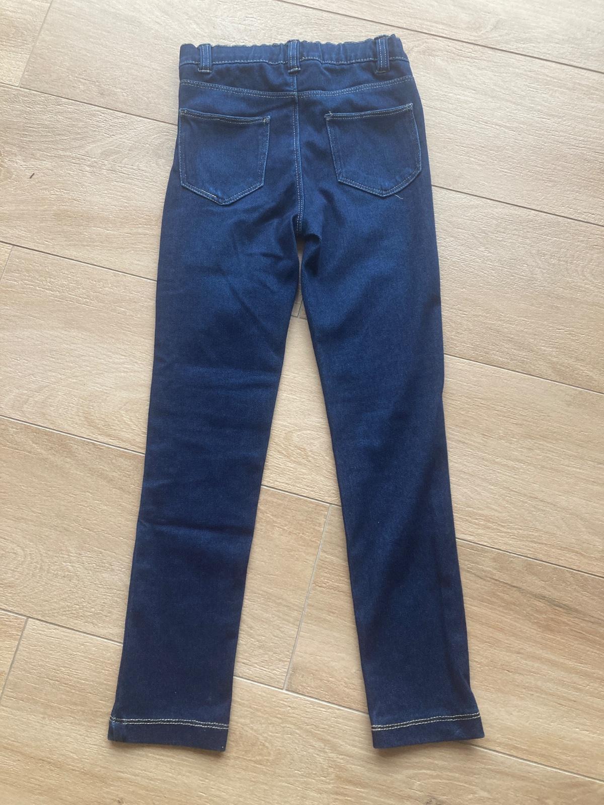 Bez poškodení, mäkké, strečové riflové legíny, v páse guma na regulovanie, obvod pasu v kľude 59 cm, bočná dĺžka 80 cm, od rozkroku nadol 58 cm.