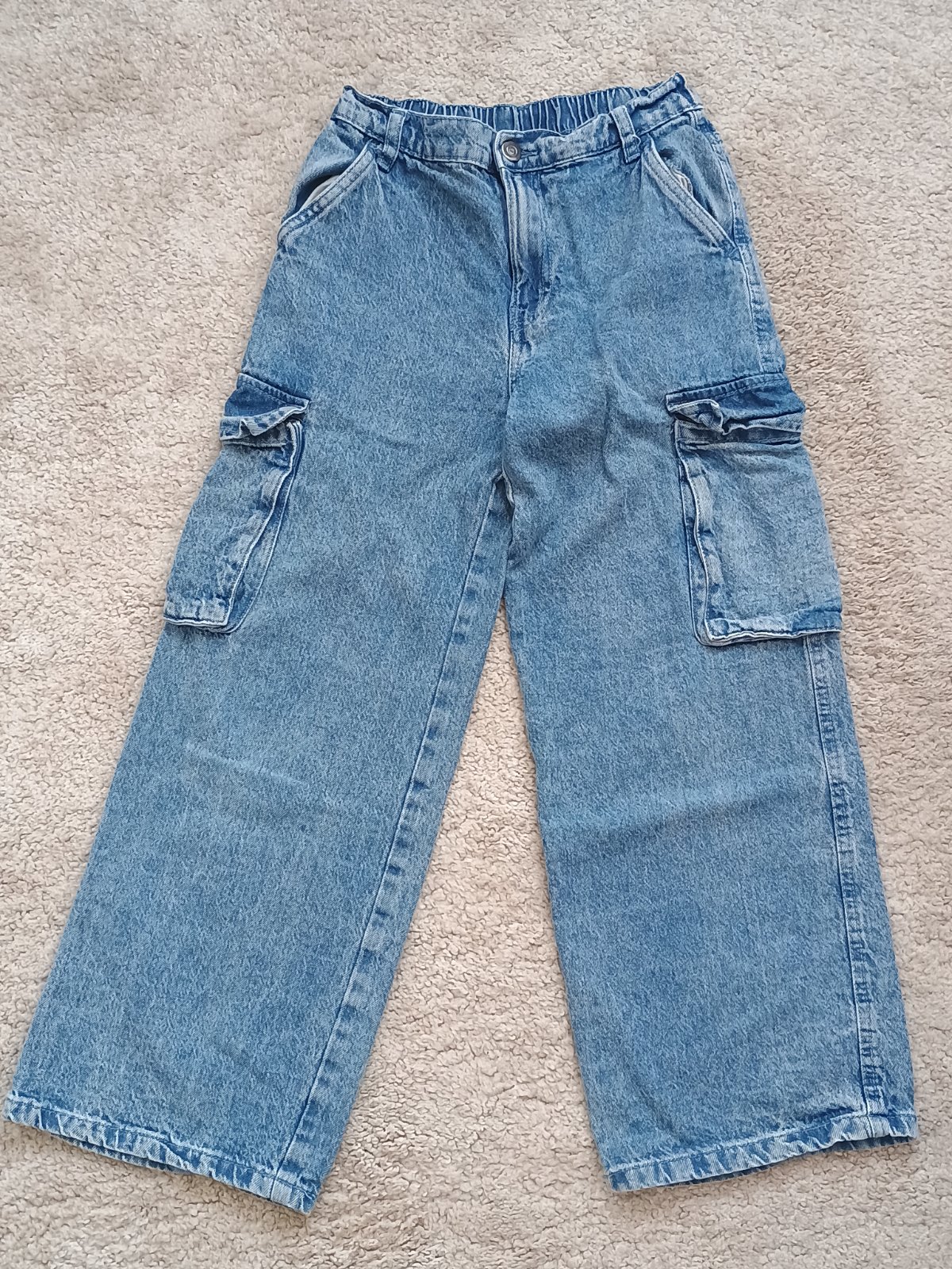 Pohodlné na nosenie, mäkká riflovina. V páse čiastočne na gumu. Mám v rovnakom strihu aj o číslo menšiu v.140. Top stav, málo používané.
