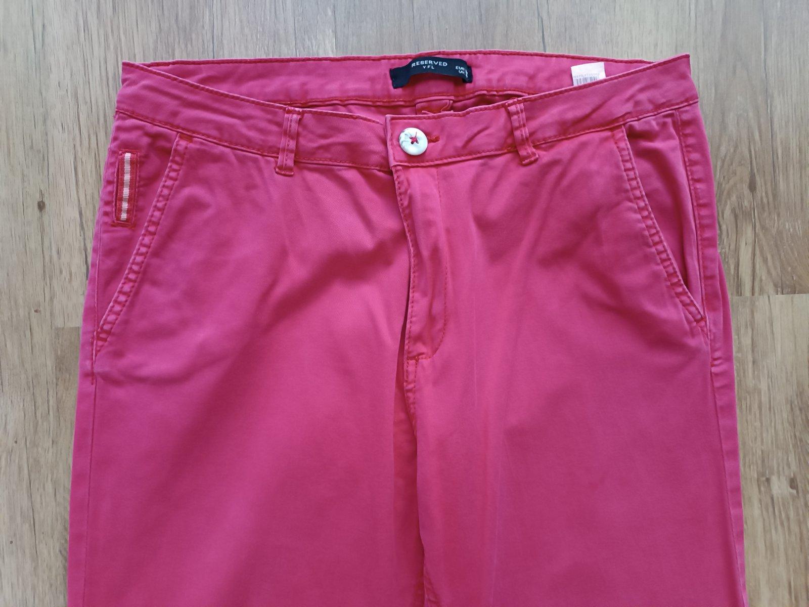 Predám používané, nezničené nohavice veľ.38, zloženie 98% bavlna plus 2% elastan, zn.Reserved, rozmery- pás 39 cm, d 95 cm.
