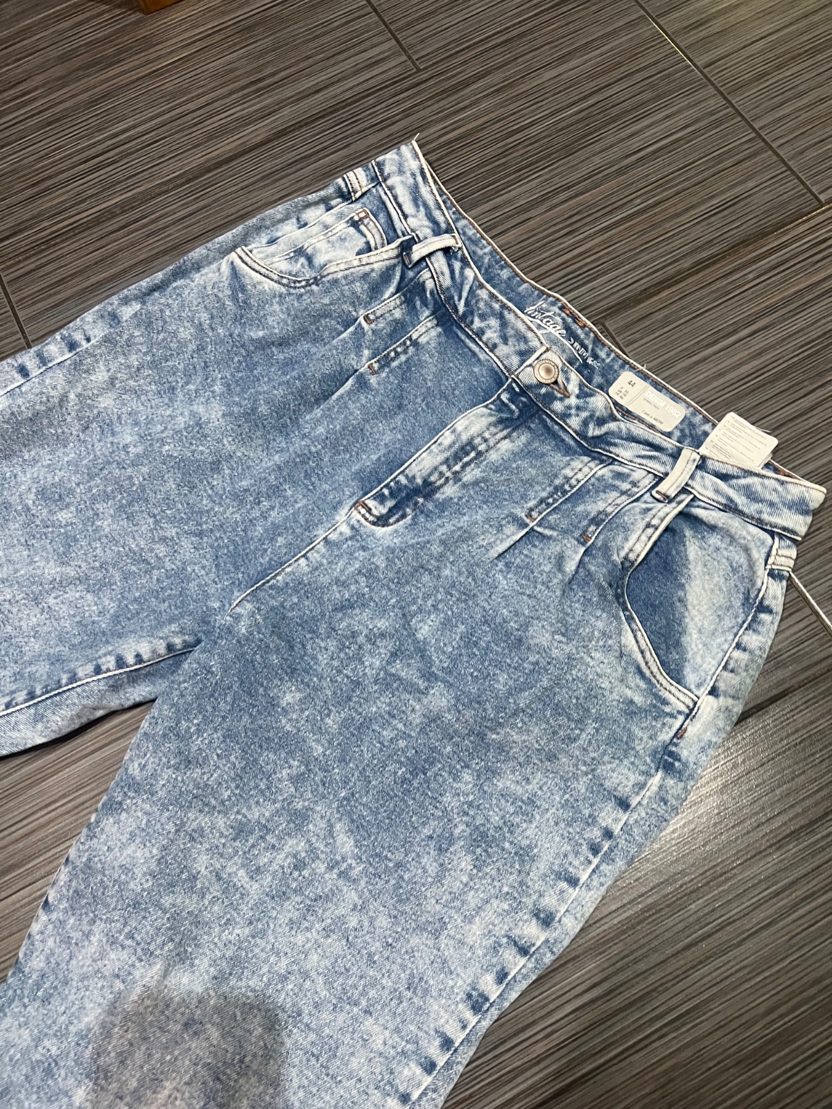 Privezené zo Španielska, oblečené len 1-2krát - nevšimla som si, že majú nižší sed. Klasický 5vreckový rovný strih - dl.101cm. od rozkroku 77cm, pás 2x44cm, boky 2x54cm, PS 23cm, ZS 35cm - sú dosť ...