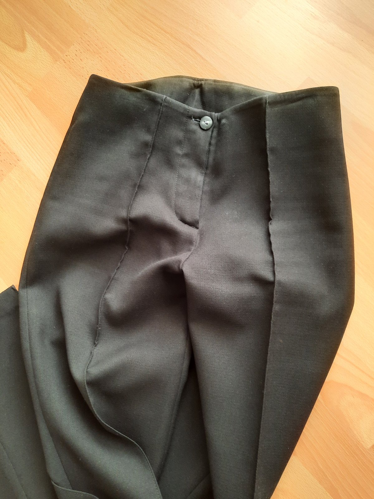 Predám čierne dámske elegantné nohavice s pukmi v super stave. Majú širší strih (dole sára)