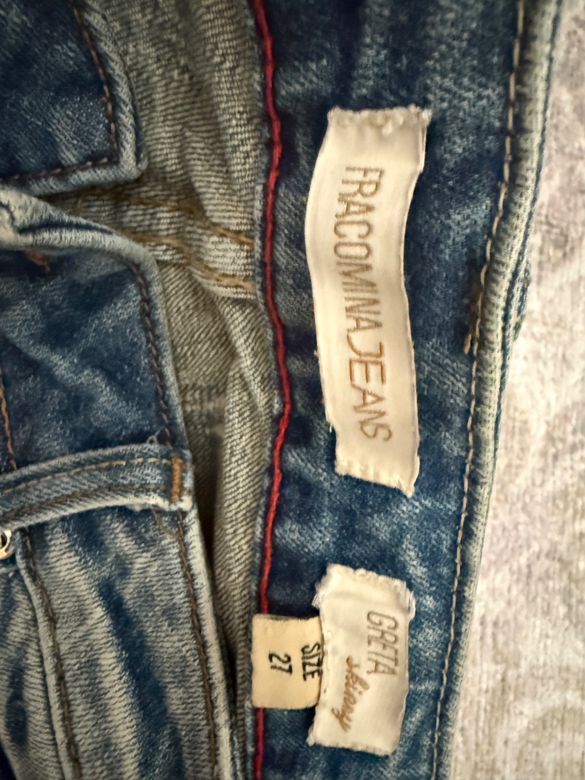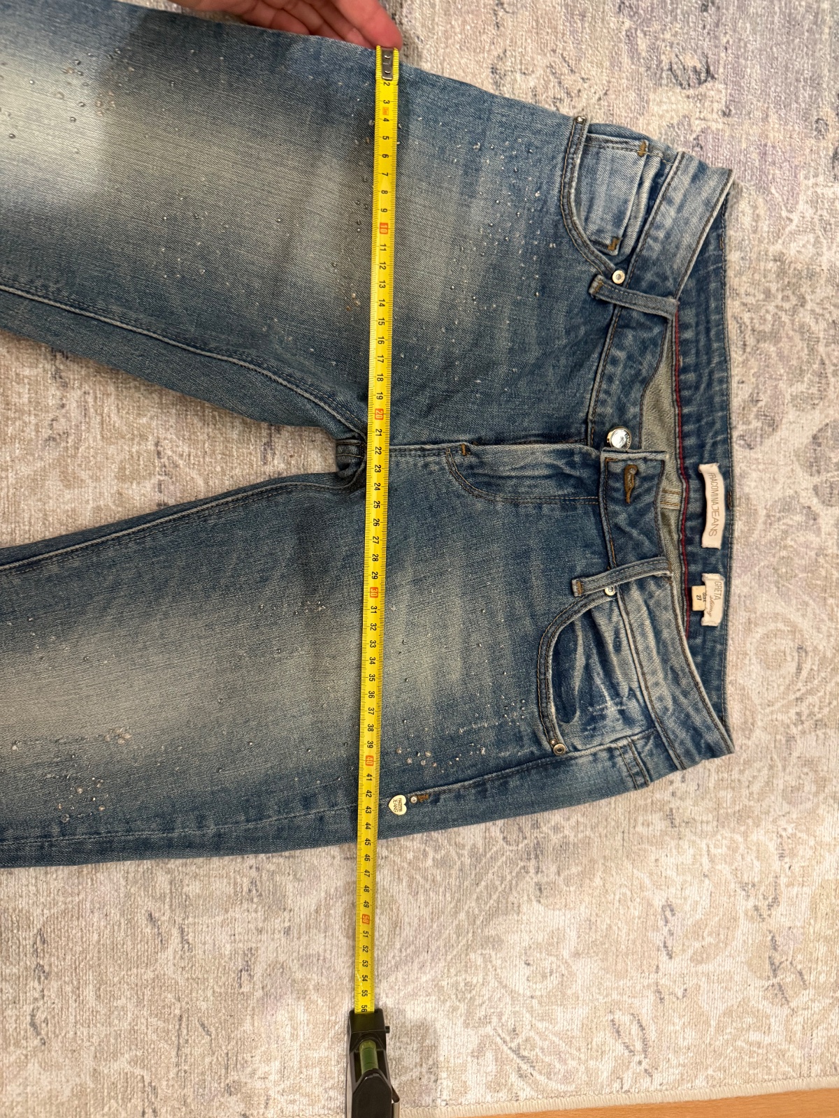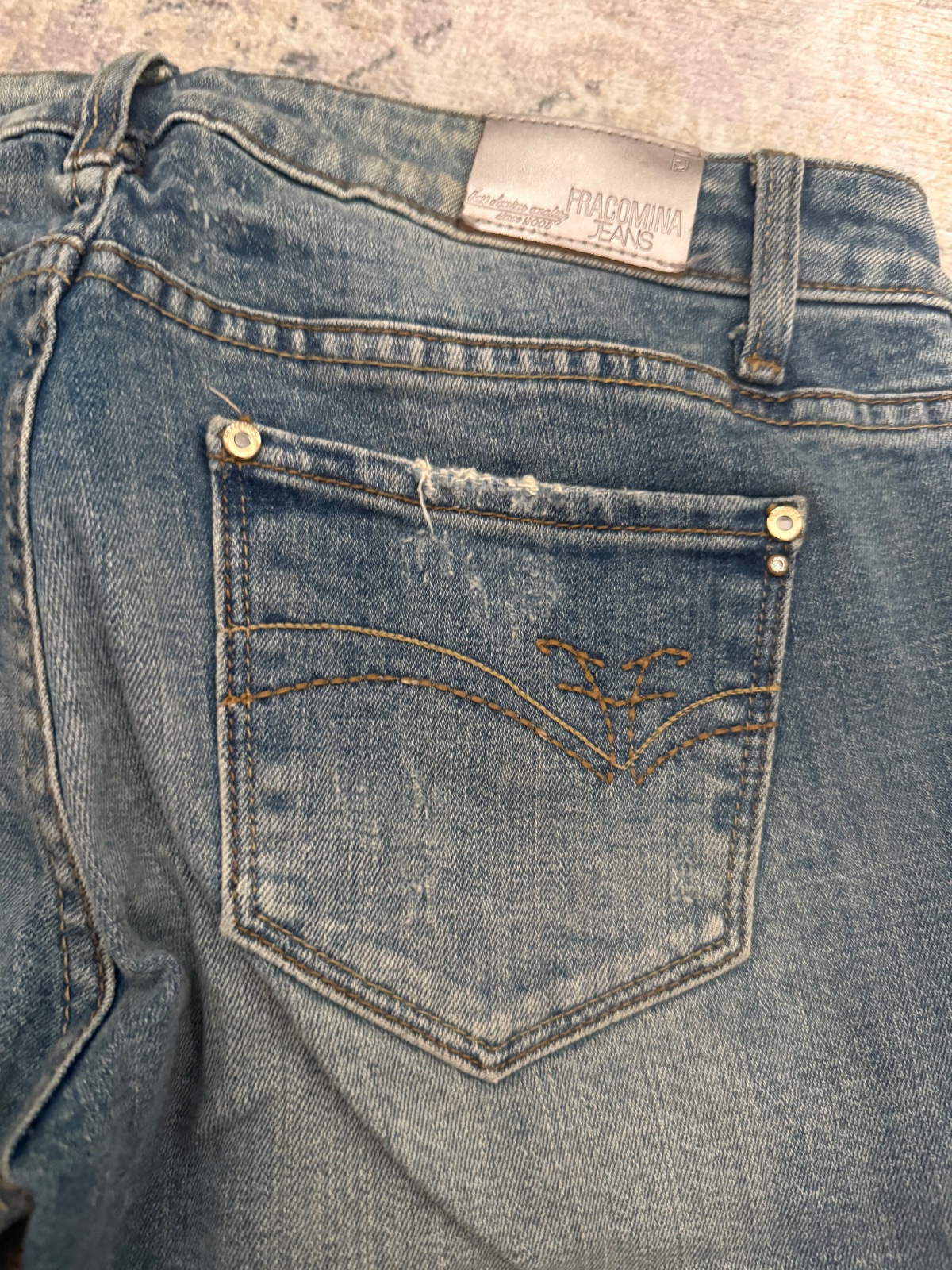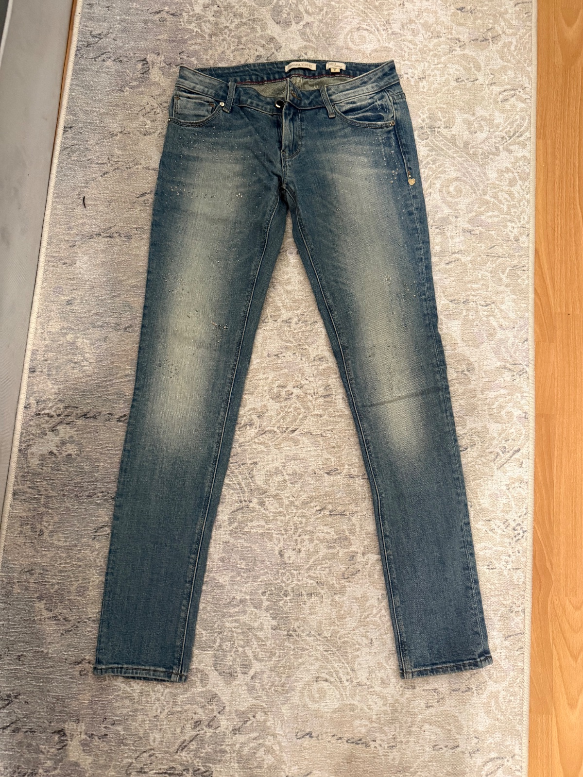 Predám perfektne tmavomodre rifliky Fracomina - v super stave - zloženie bavlna + elastan - veľkosť max. 36 - robia super postavu - vzadu vrecka bohato zdobene štrasom Rozmery : - pás - bedra - 38...