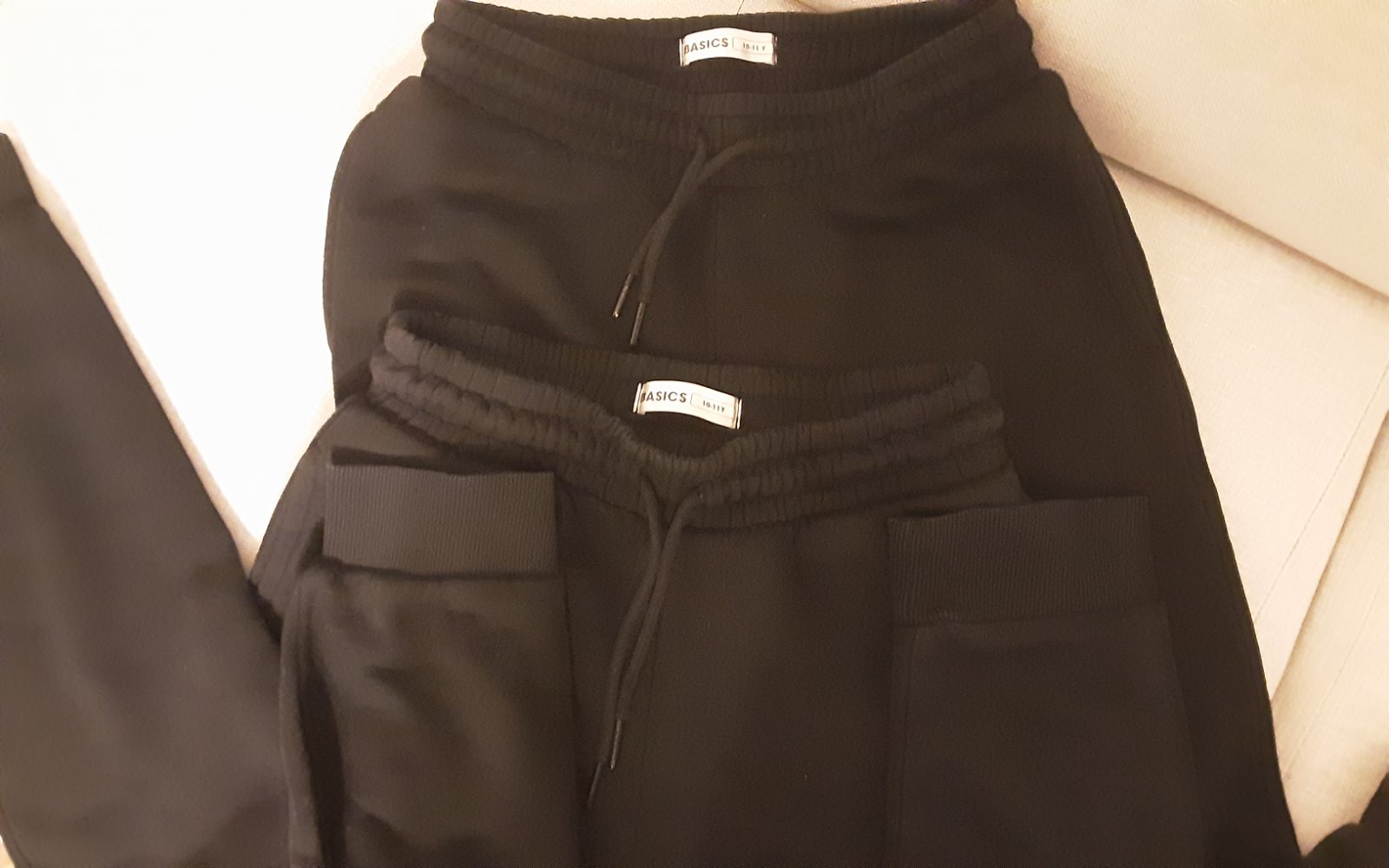 1 teplaky len oprate, druhe 2x oblečené, ale je tam 1 maly fliacik