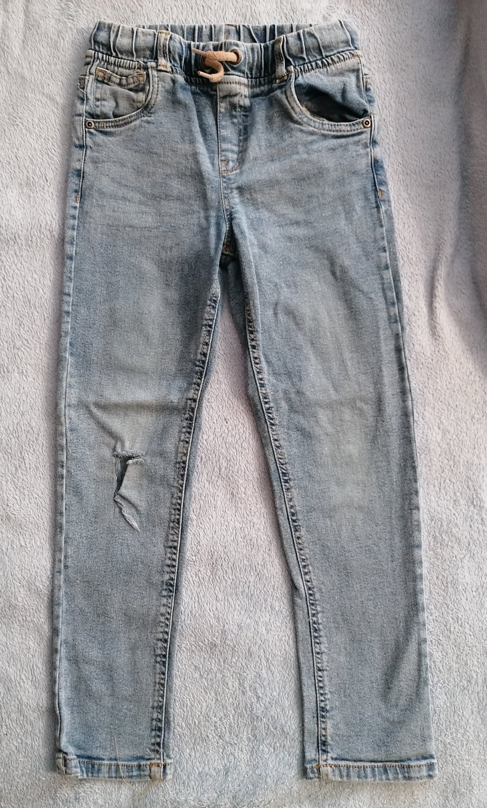 Ponúkam super rifle pre malého fesaka. Nosené na striedačku, avšak malému sa podarila diera na kolene a už ich odmietal. Inak podla mňa to vyzerá akoby tam ta diera patrila 😆