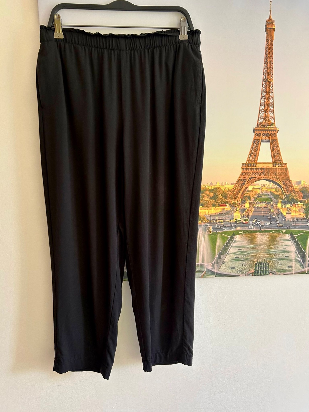 Predám čierne nohavice zn.MANGO, širšia guma v páse, bočné vrecká, prírodné zloženie z bavlny a viskozy. Veľkosť M, rozmery: pás pred natiahnutím 39x2 cm, dĺžka 90 cm. Vhodné aj na horúce letné dni. BA alebo poštou+poštovné.