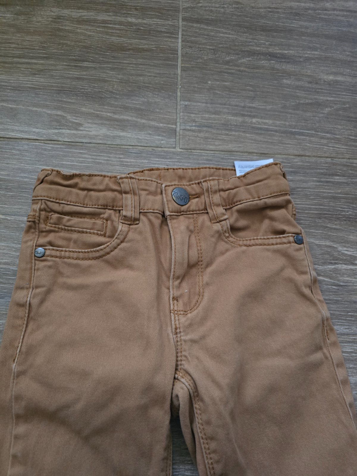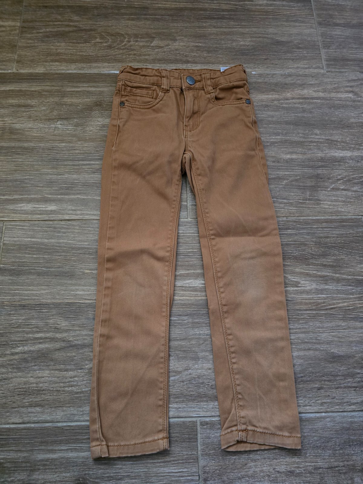 Nohavice podšité veľkosť 5-6rokov, bez poškodenia, trochu vidno pranie, ale určite ešte vhodné do škôlky či školy. V páse je našitá gumička, aby sa nemuseli viazať šnúrky.V