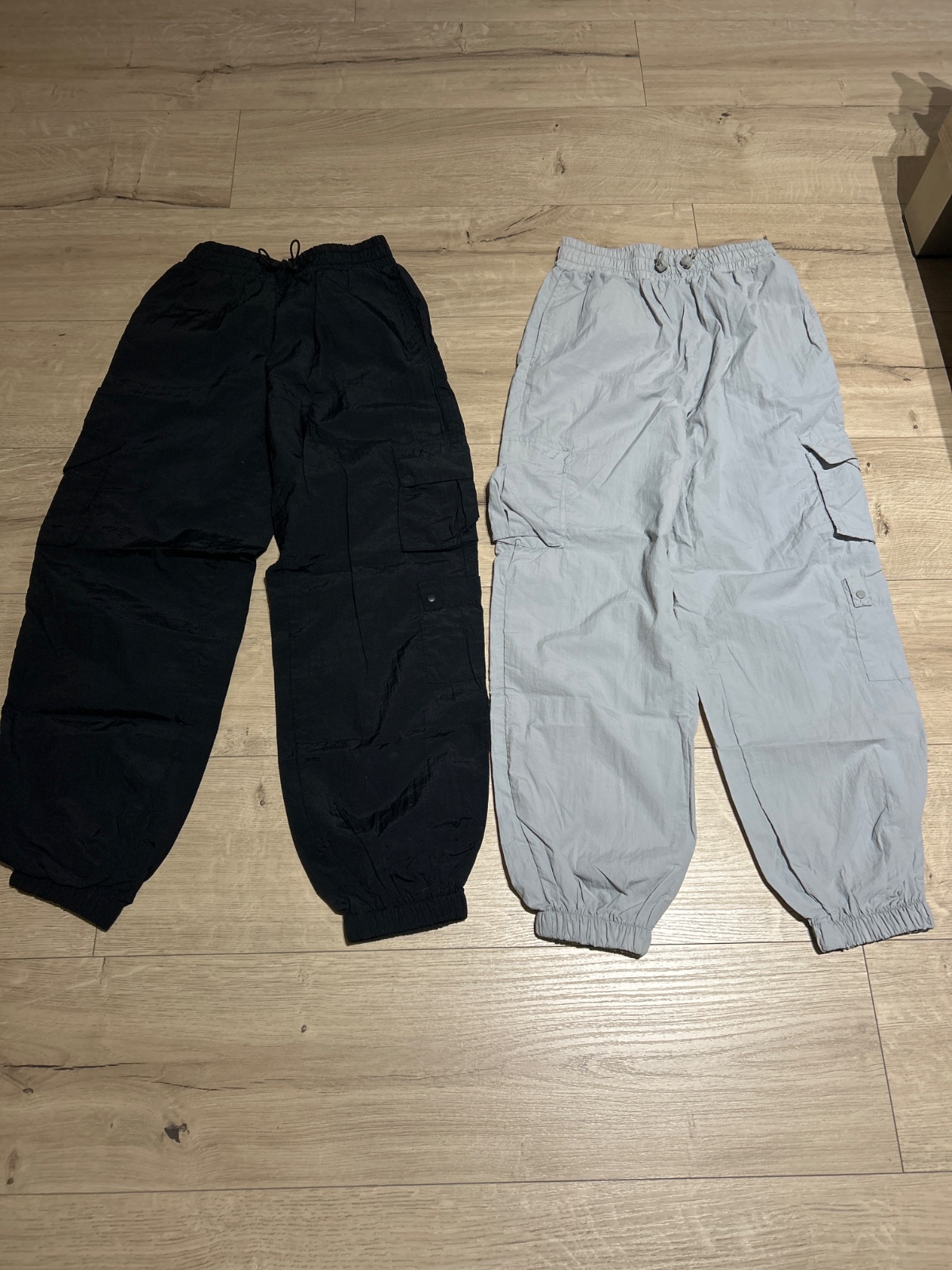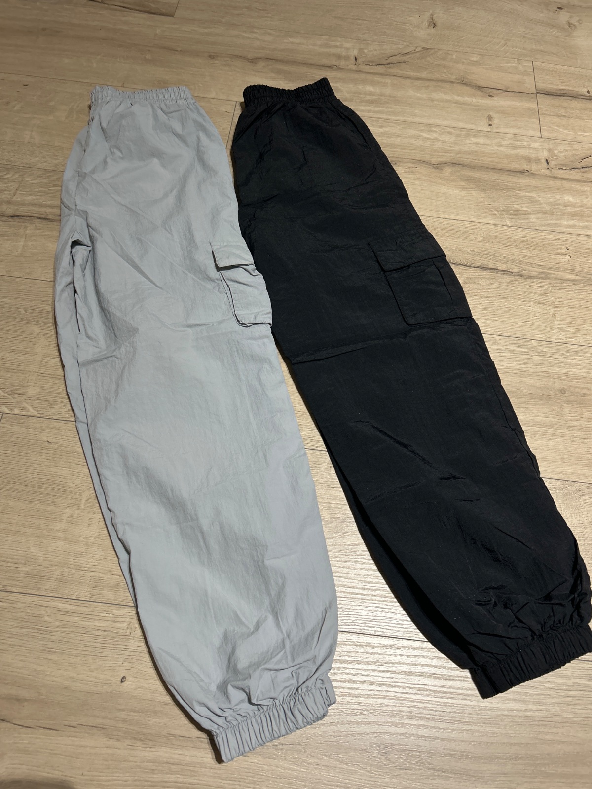 Ako nenosené,100% stav,ľahké,moderné,vzdušné šuštiakové nohavice . Čierne dľžka 87,5 cm,sivé dĺžka 88,5 cm.Kus 8 eur